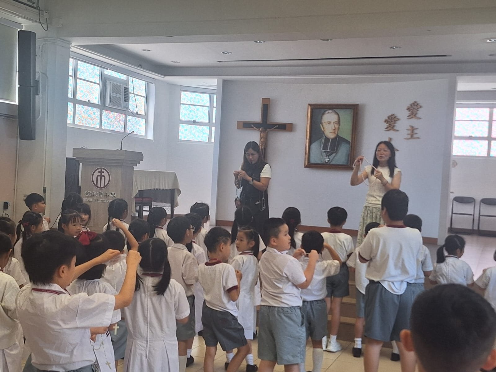 為回應教宗良十四世為世界和平祈禱的呼籲,獻主會小學於10月玫瑰月進行誦唸玫瑰經活動。 牧民助理和老師帶領同學小息時,手執玫瑰唸珠,在禮堂一起為世界和平恭唸玫瑰經,以表達對聖母的敬愛,也請聖母為我們轉求天主,讓世界得享真正的和平。同學在祈禱期間態度認真,熱心向天主和聖母祈禱。
