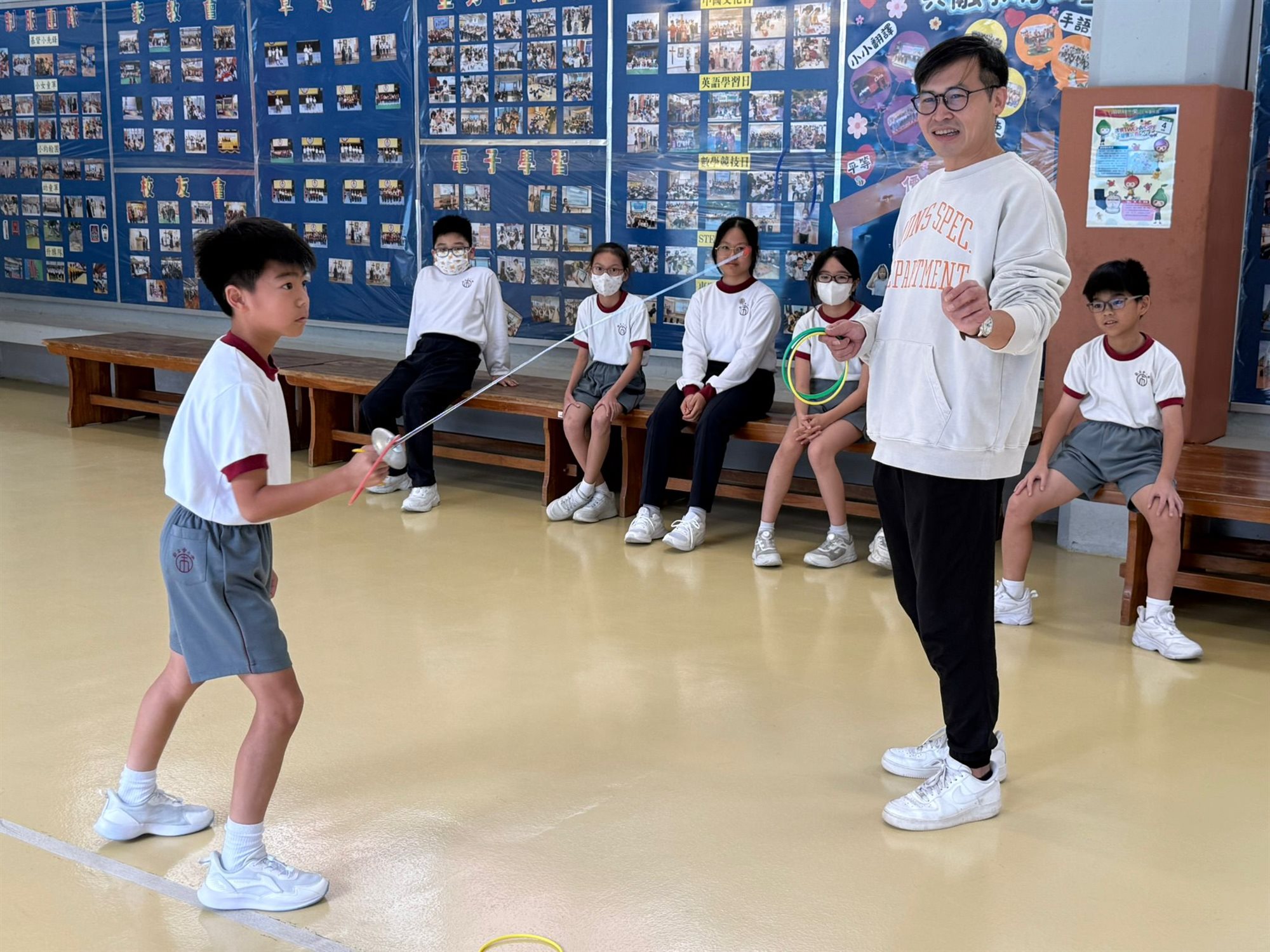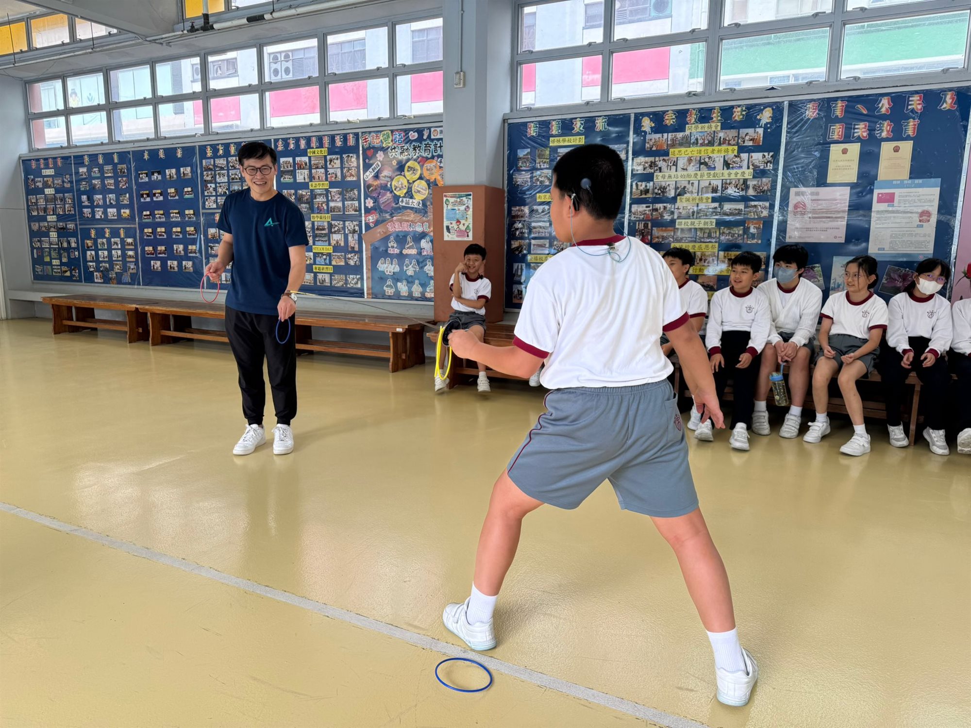 為響應全運會的熱潮,推廣全民運動精神,我校特別舉辦「劍擊體驗日」,讓同學們在運動氛圍中感受劍擊這項全運會項目的魅力。劍擊不僅是一項優雅而充滿挑戰的運動,更能鍛煉孩子的專注力、反應力及身體協調能力。此次活動由專業劍擊教練指導,通過有趣的課堂和體驗環節,讓同學們親身感受劍擊的樂趣,激發對運動的熱愛,與全運會精神接軌,體驗奧運級別的運動氛圍!