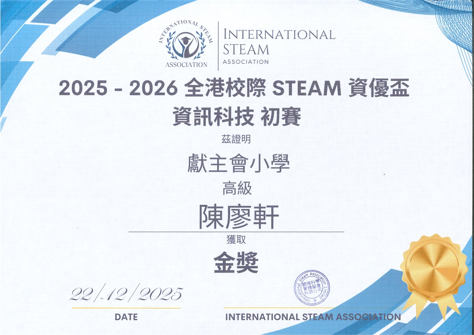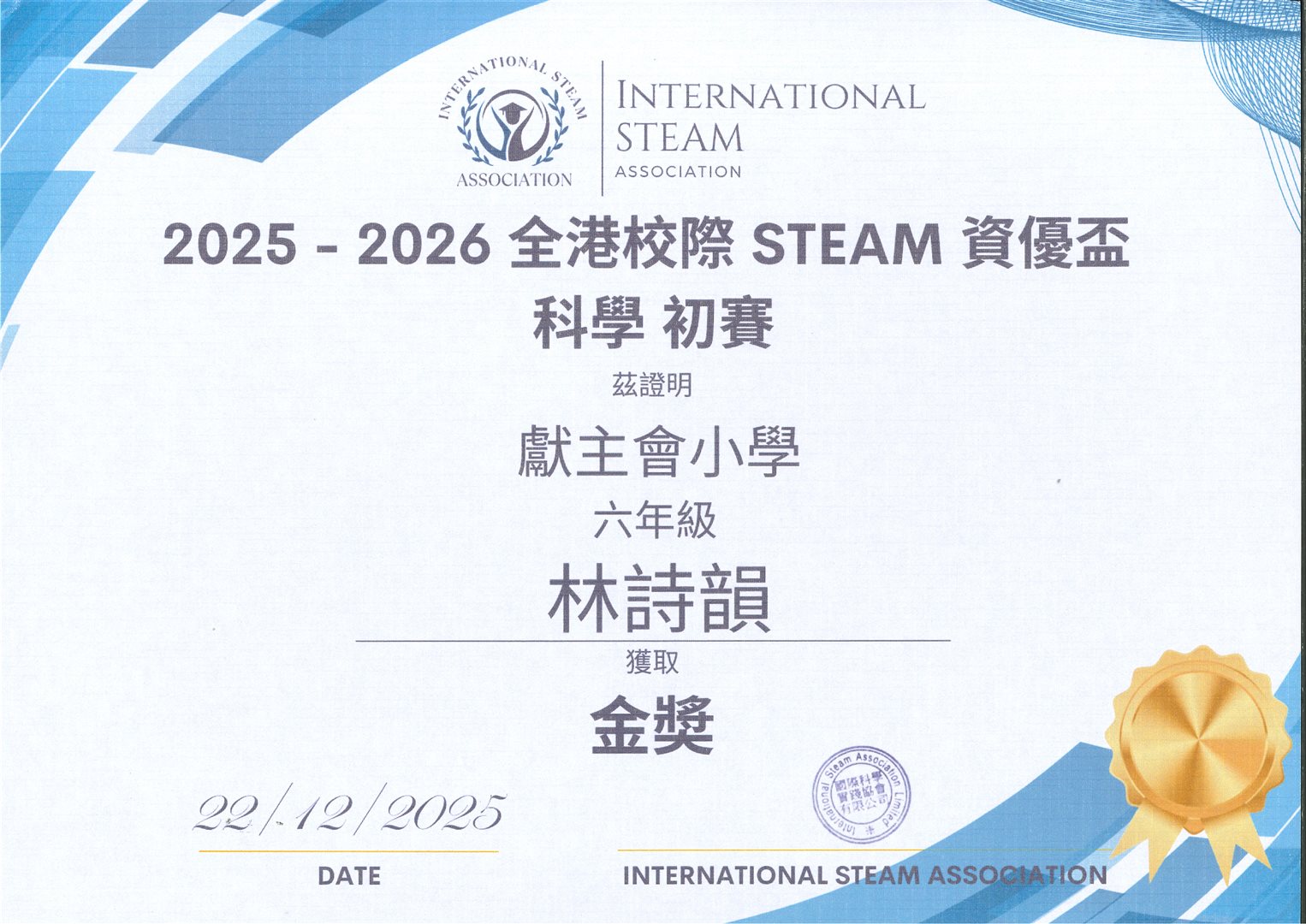 科學初賽 金獎