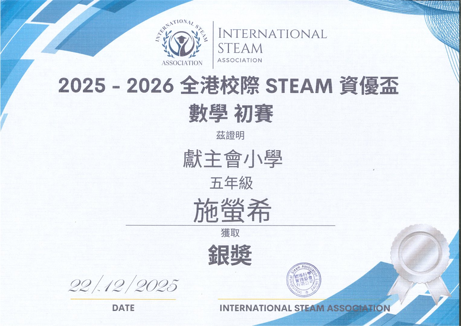 數學初賽 銀獎