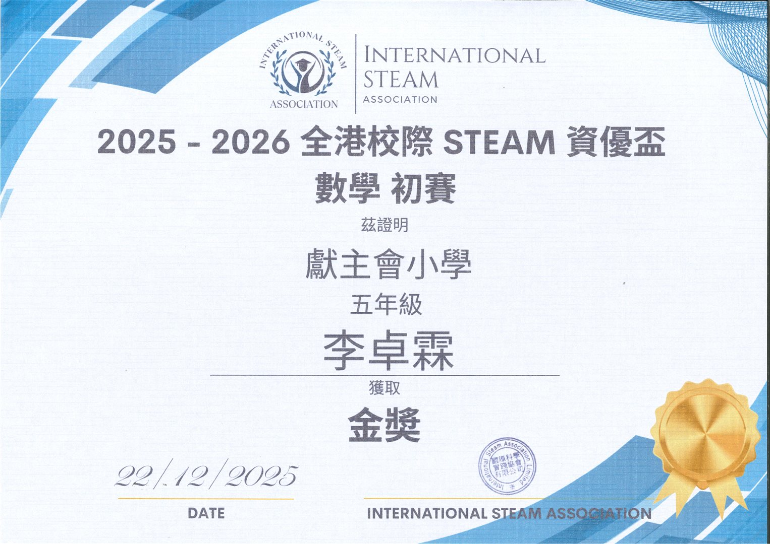 數學初賽 金獎