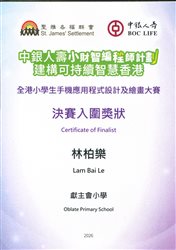我校於2026年11月1日(日)在大埔寶湖道小型硬地足球場,參加了由大埔體育會及Gadget Football Club舉辦的五人足球賽。我校共派出九名同學參賽,經過五場比賽,最終獲得U12組別碟賽季軍。6C班蔡尚楷同學更獲選為賽事最佳球員之一。同學們在比賽中都收穫了寶貴的經驗。