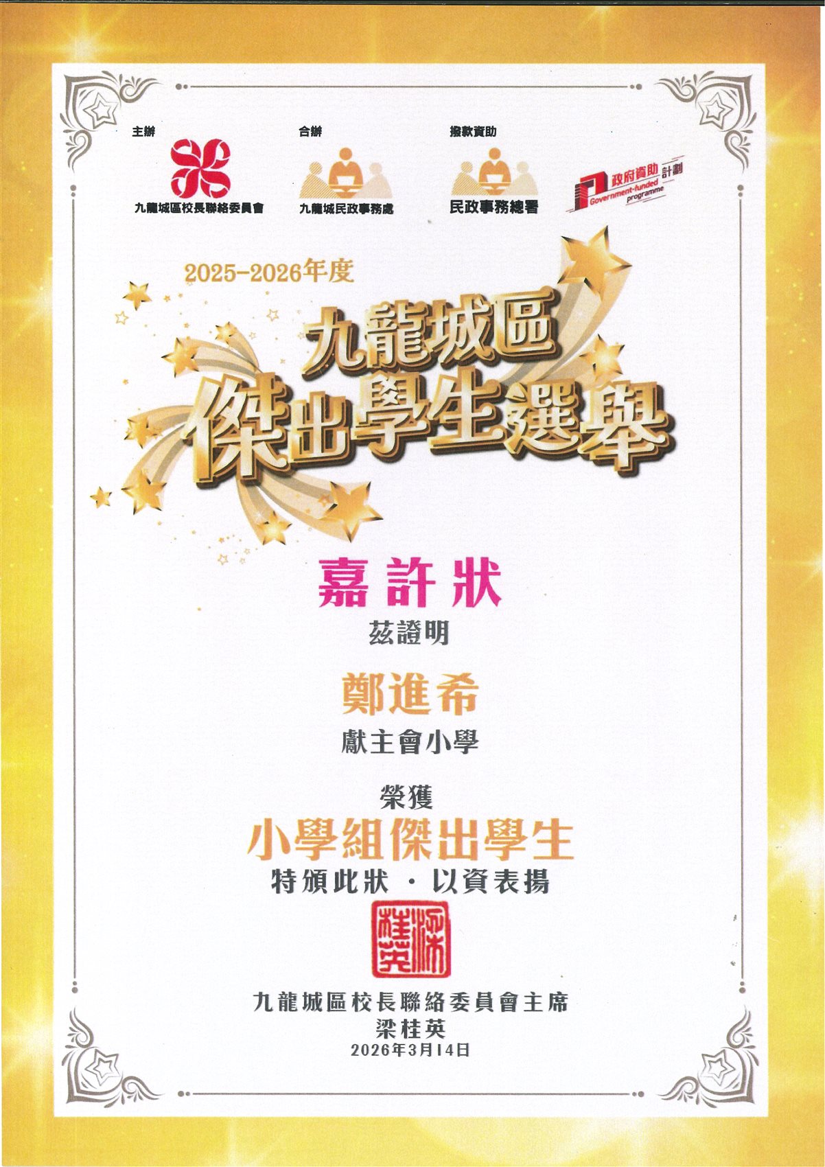 2025-2026年度九龍城區傑出學生選舉