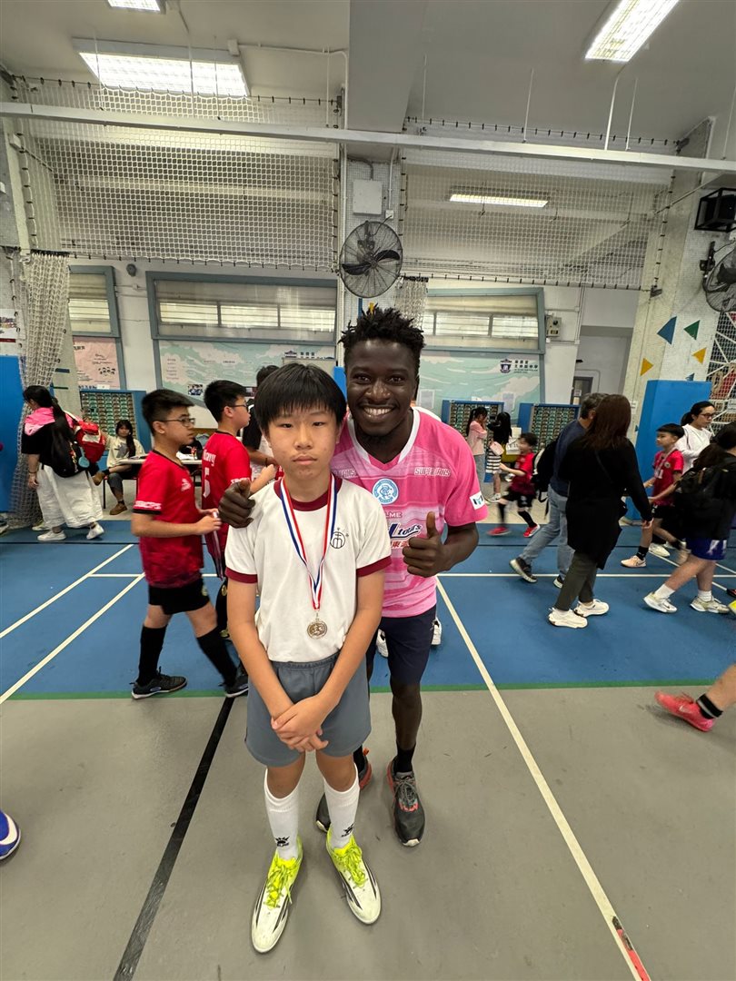 當天,6E 許雋熙同學入選賽事最佳陣容,代表小學聯隊與港超球隊標準流浪球員進行友誼賽。不論勝負,我們更看重同學能持續培養運動健康生活習慣,並在學業與體育之間取得平衡。