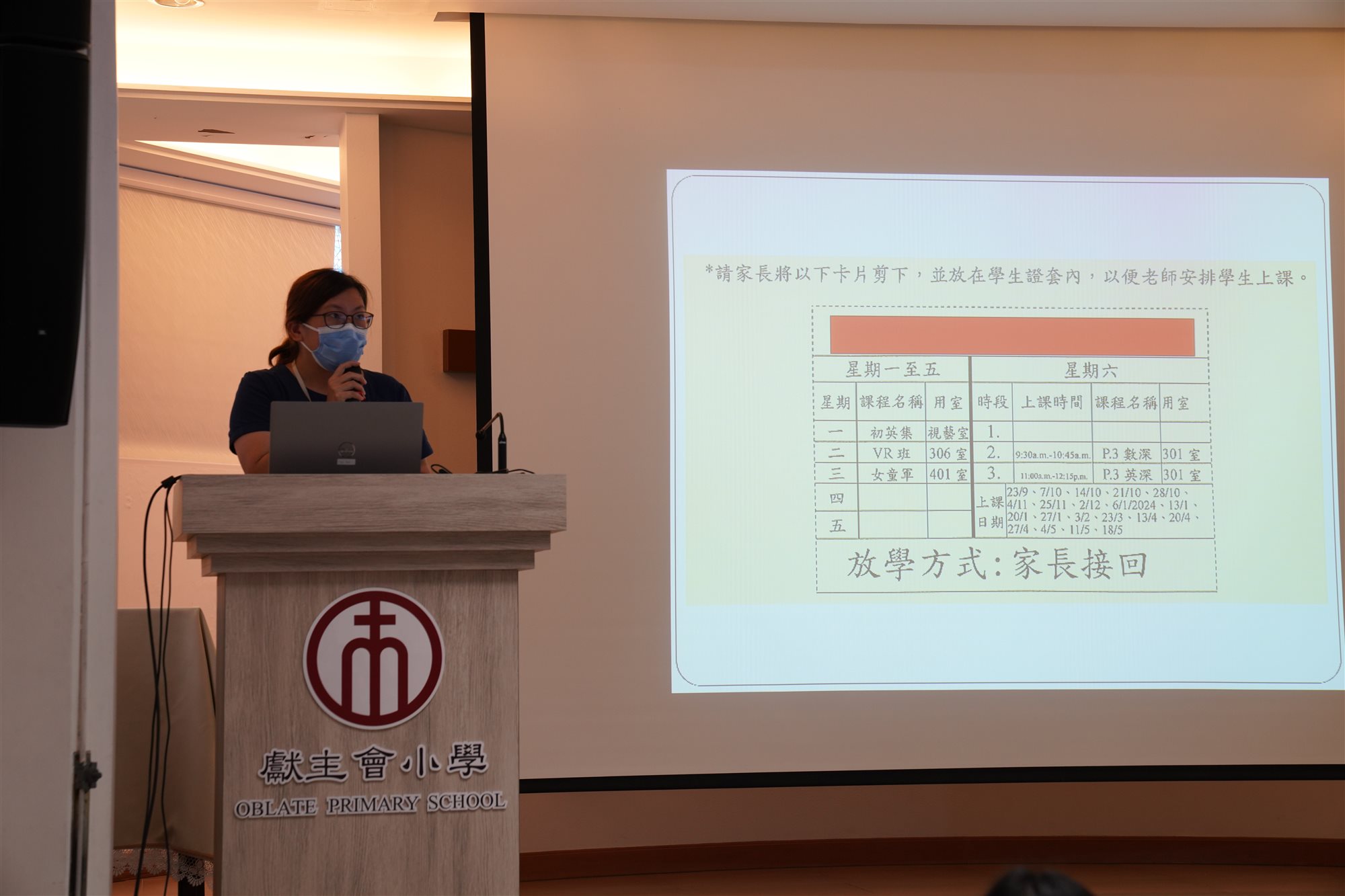 為與家長加強溝通及建立良好的夥伴關係,共同培育學生健康發展及成長,本校特舉辦「一至六年級家長教師日」。除了由王校長、課程主任及活動主任向家長簡介學校發展方向外,更邀請了資深家長教育講者盧韻誼女士作分享,主題為「故事的力量-探索孩子的成長密碼」。除了參與講座外,家長亦與班主任及科任老師會晤,以了解中英數各科的重點及學習策略。
