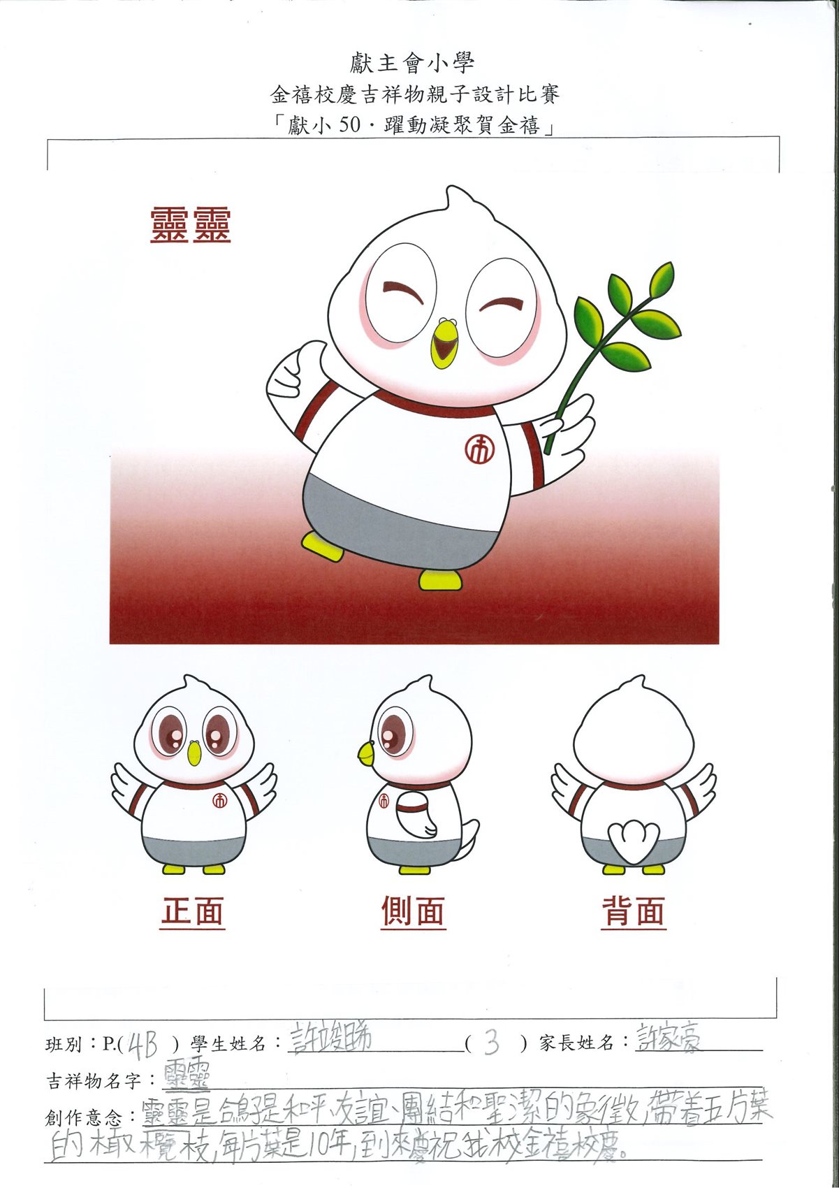 - 須為吉祥物取名,中英皆可,以易記順口為重,並須附以30-50字的作品描述,以說明創作意念。