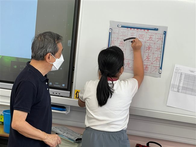 本學年,學校邀請校外導師教導P.3-P.6同學寫書法,同學們非常感興趣,認真學習。