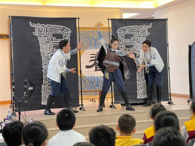 為提升學生對文言文的興趣,學校邀請了7A班戲劇組到校為P.5-6年級同學表演話劇《楊修之死》。同學通過觀賞話劇,學習到文言文的字詞意思,理解故事內容。