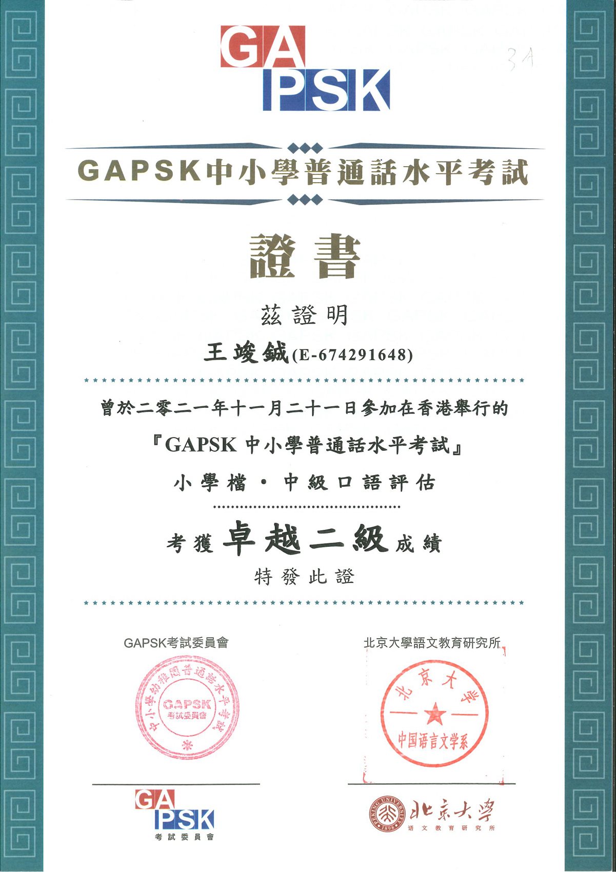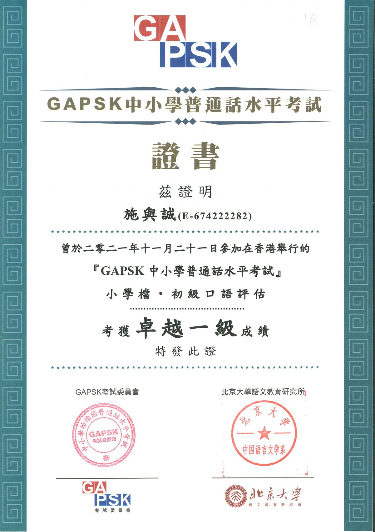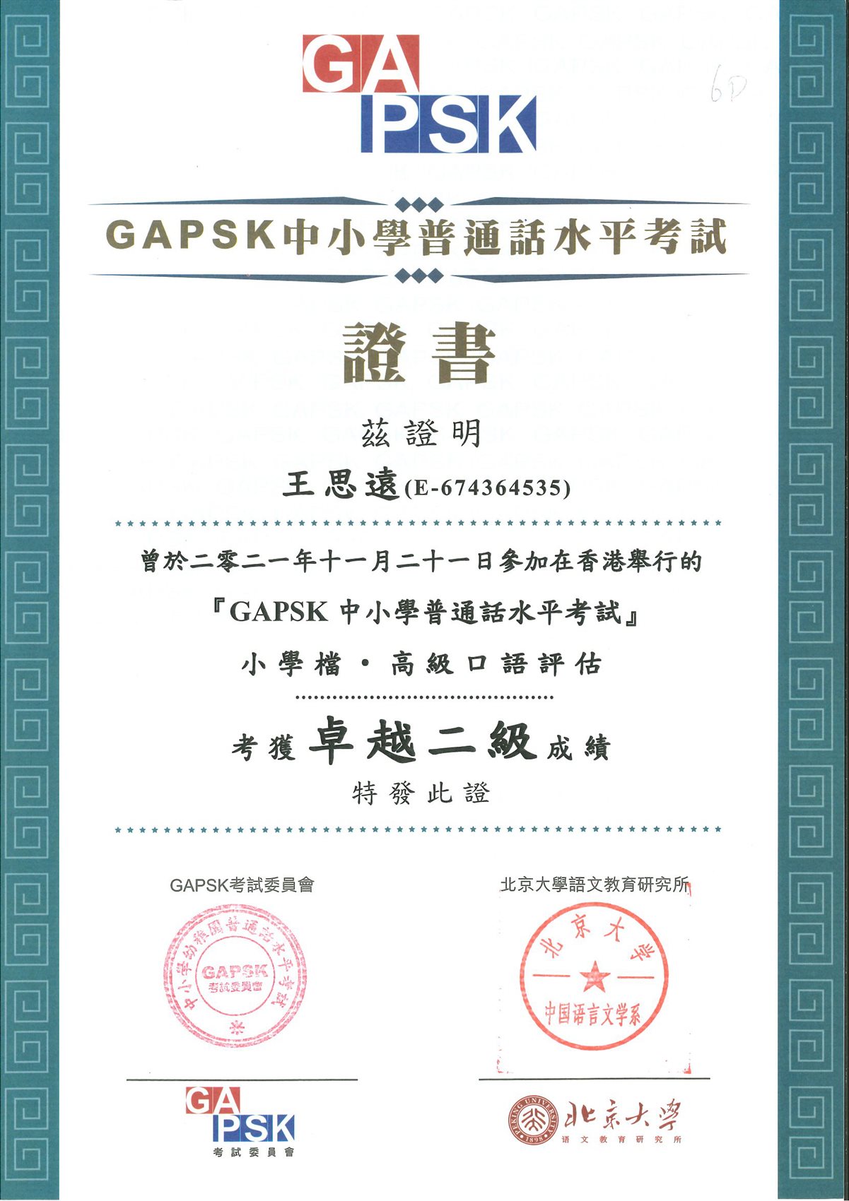 小學普通話水平測試(口語評估)