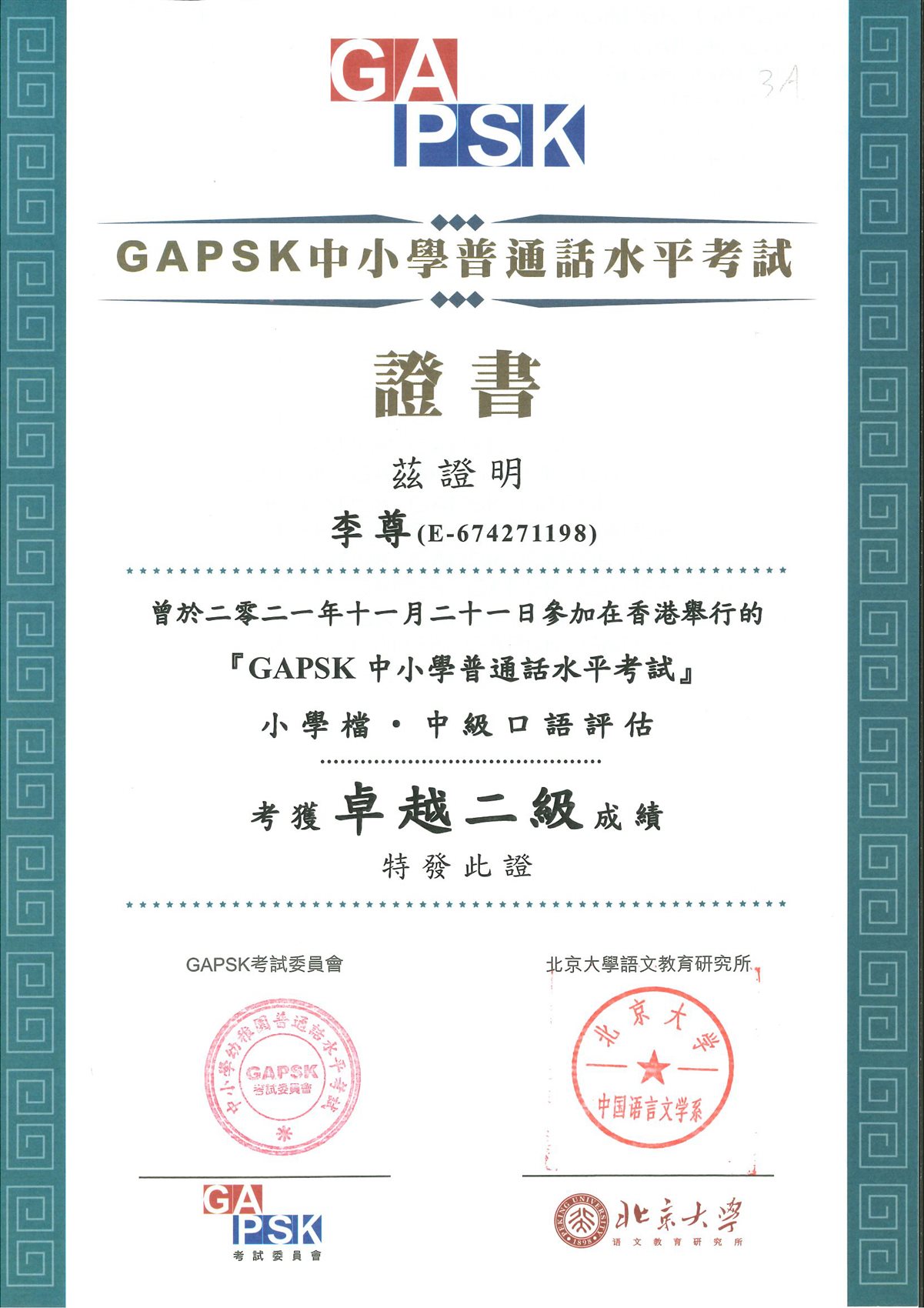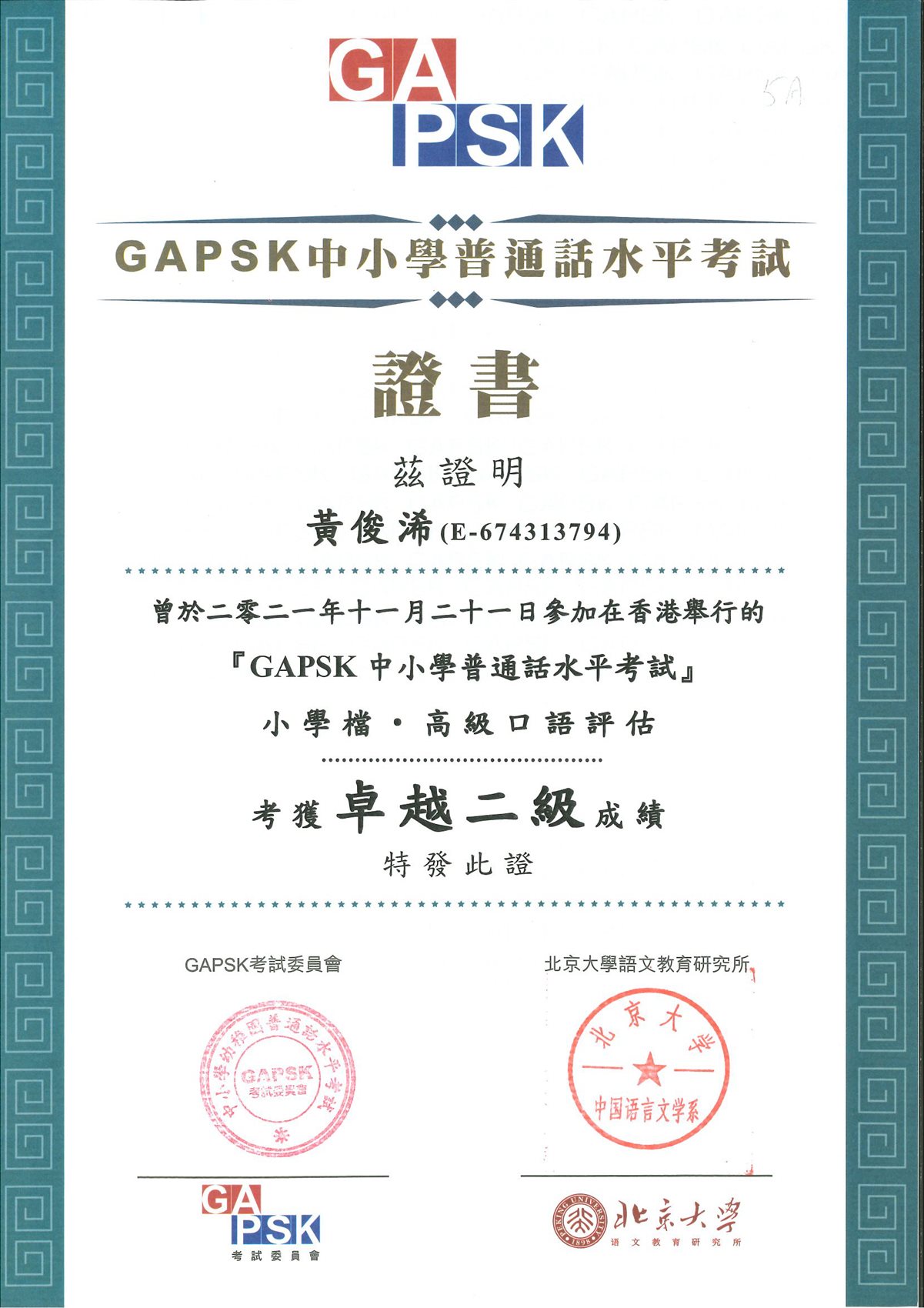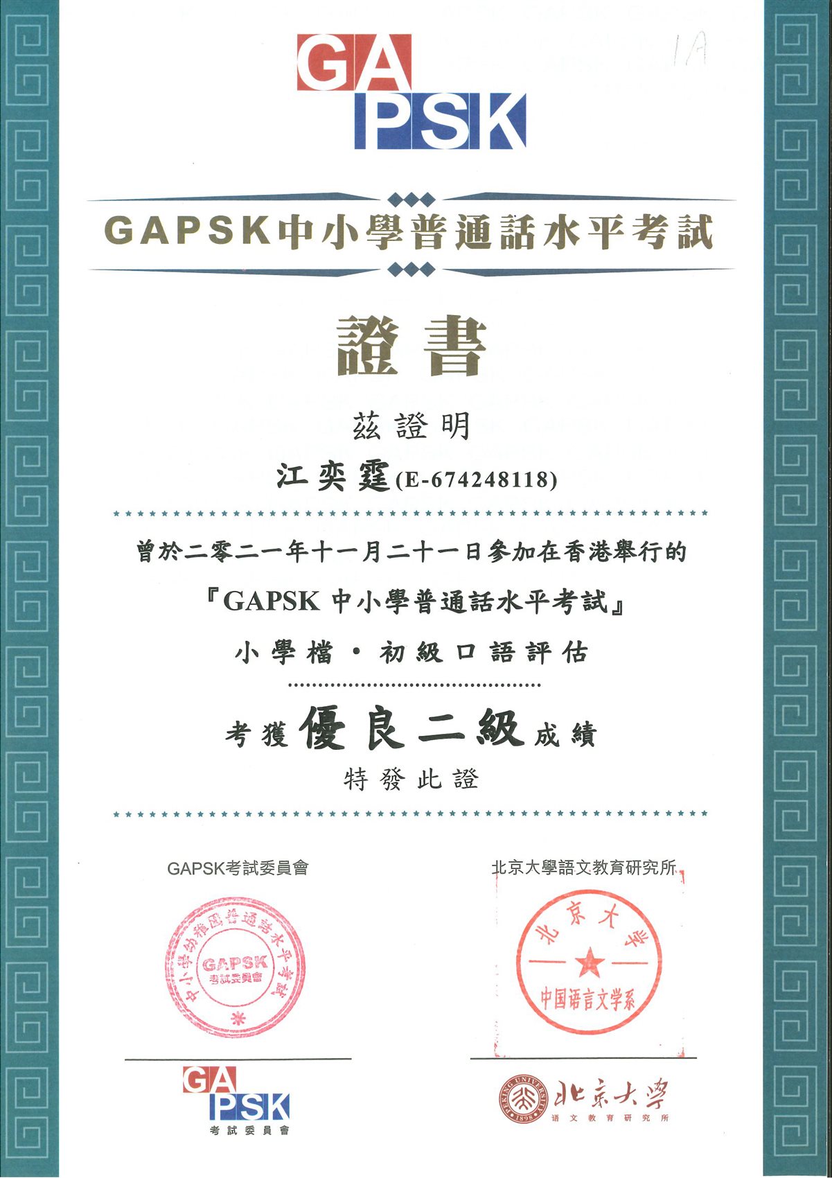 小學普通話水平測試(口語評估)