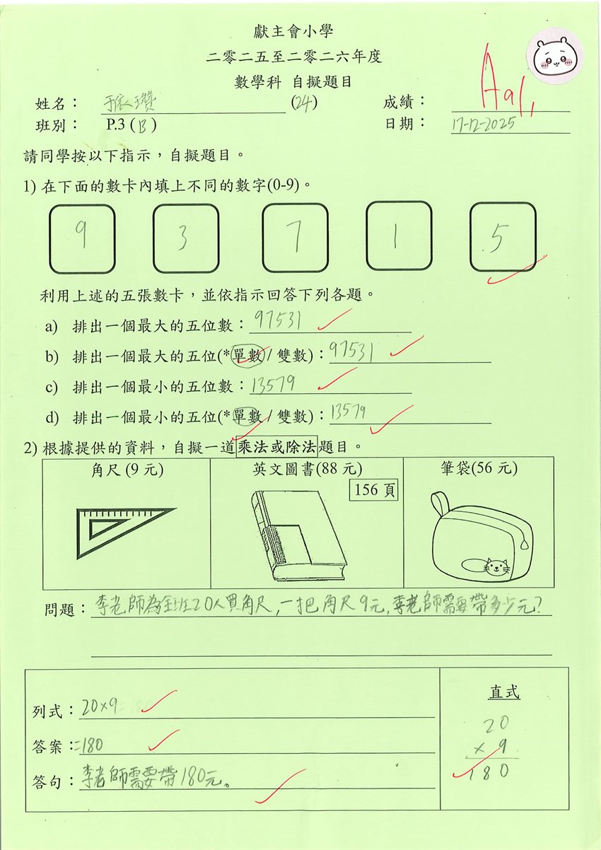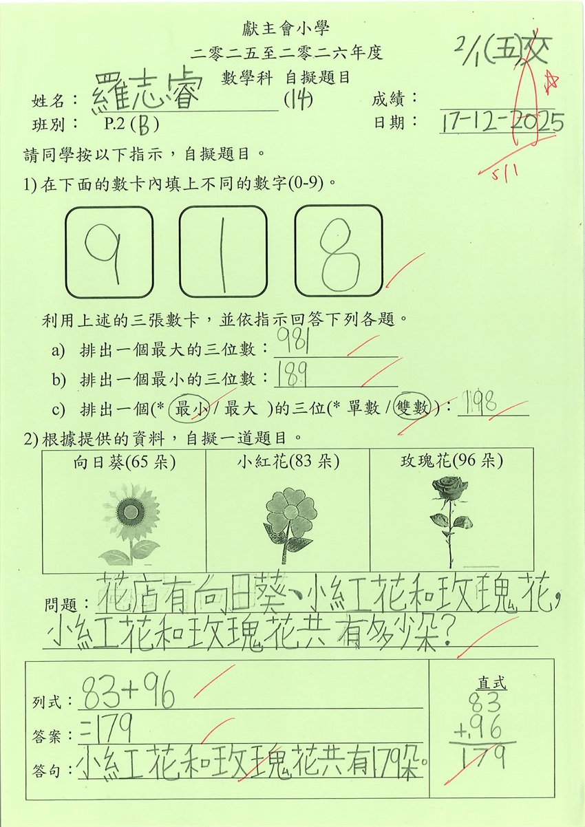 2025-2026 P3 數學佳作