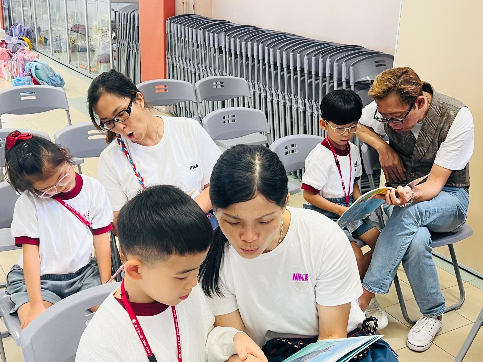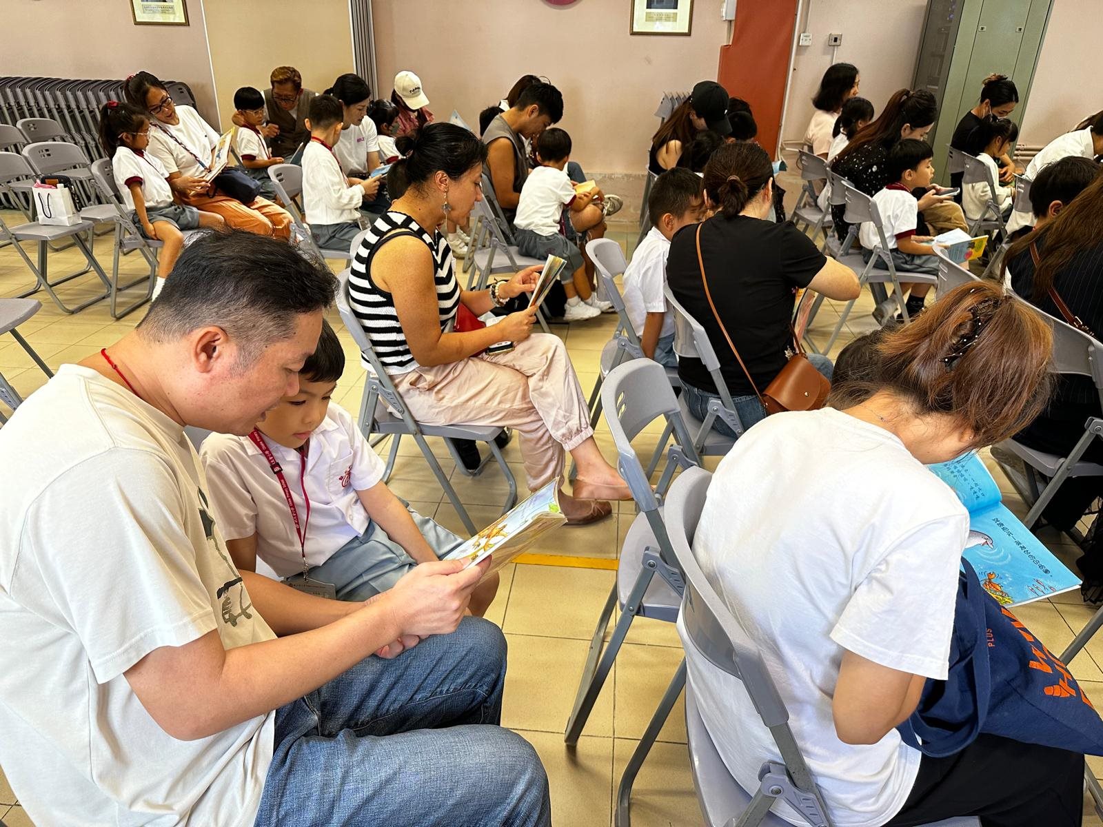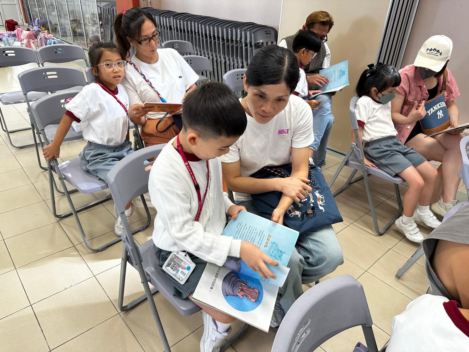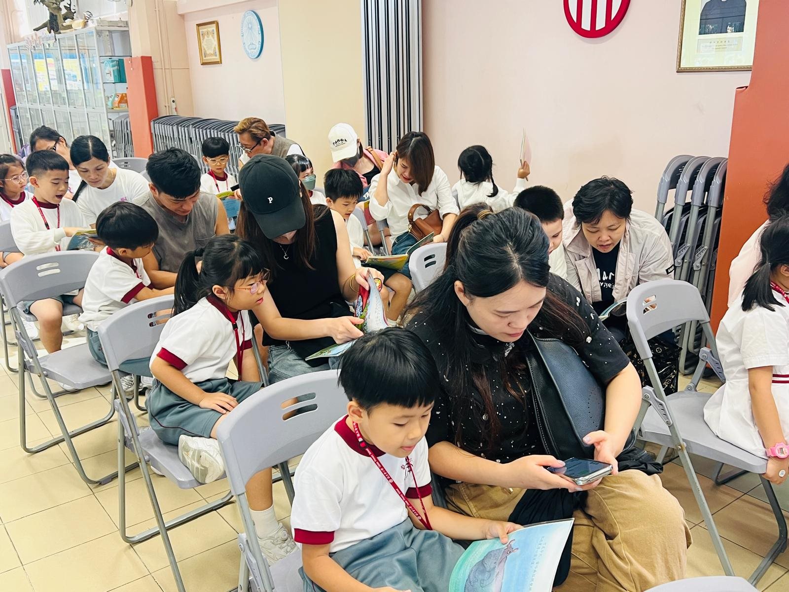 2025-10-03 (星期五) 活動類別:家長相關 為培養兒童從小養成閱讀的習慣,激發閱讀的興趣,提升閱讀賞析能力; 因此本校中央圖書館為一年級同學及家長以分班形式舉行「親子閱讀會」,使家長加深對親子閱讀的認識; 並透過學校圖書館的資源,與子女分享共讀課外書籍的溫馨時光。