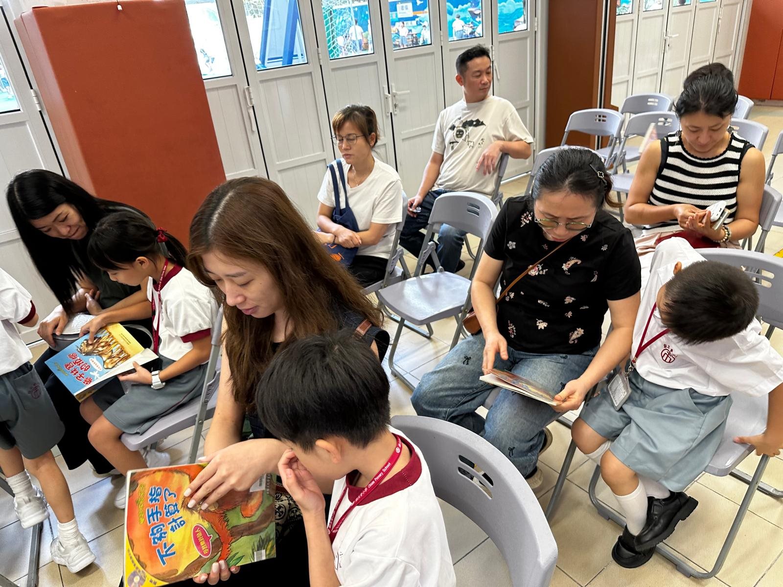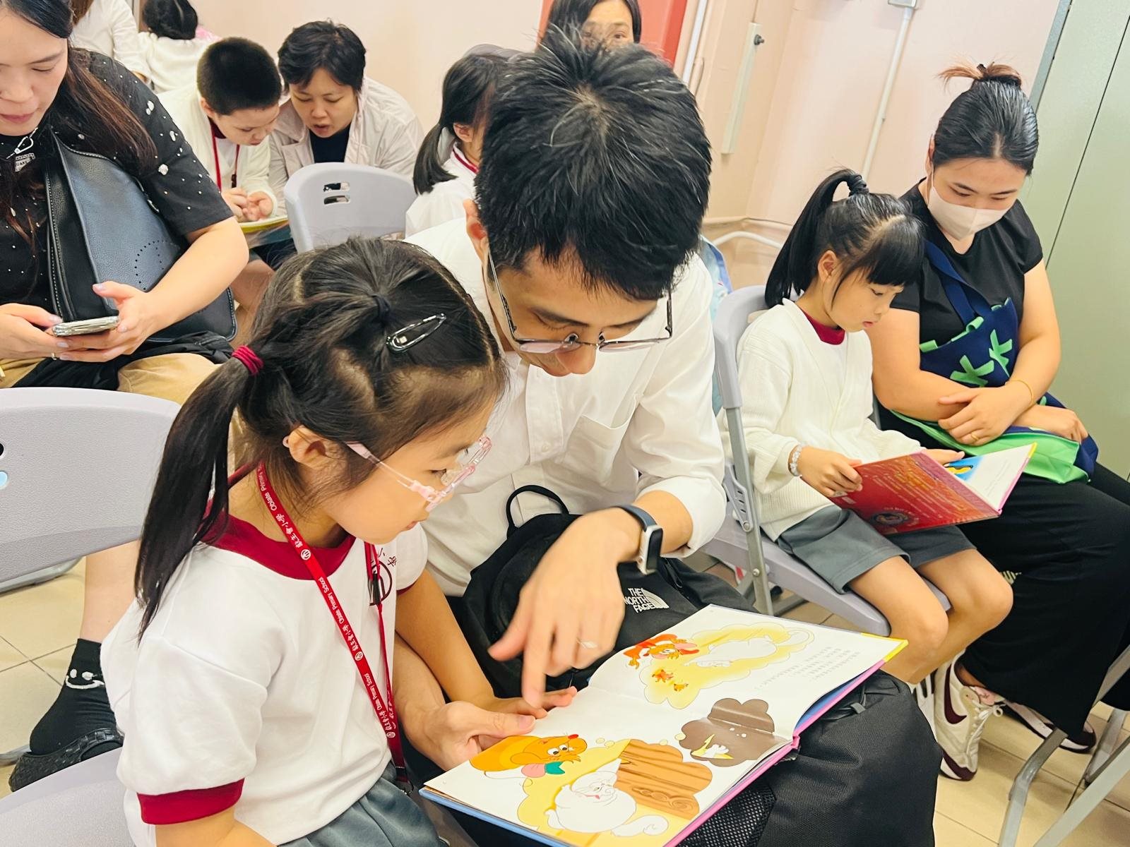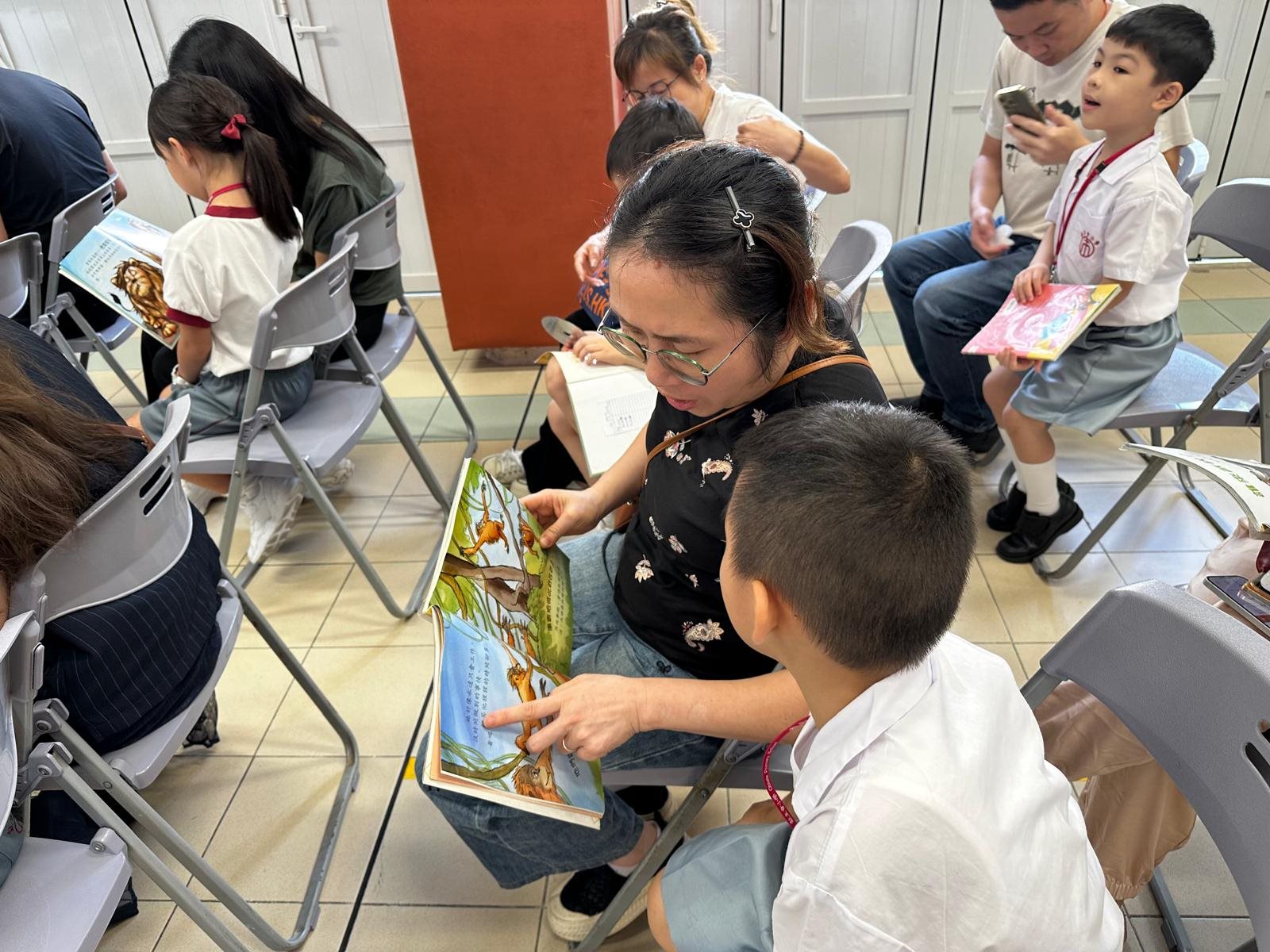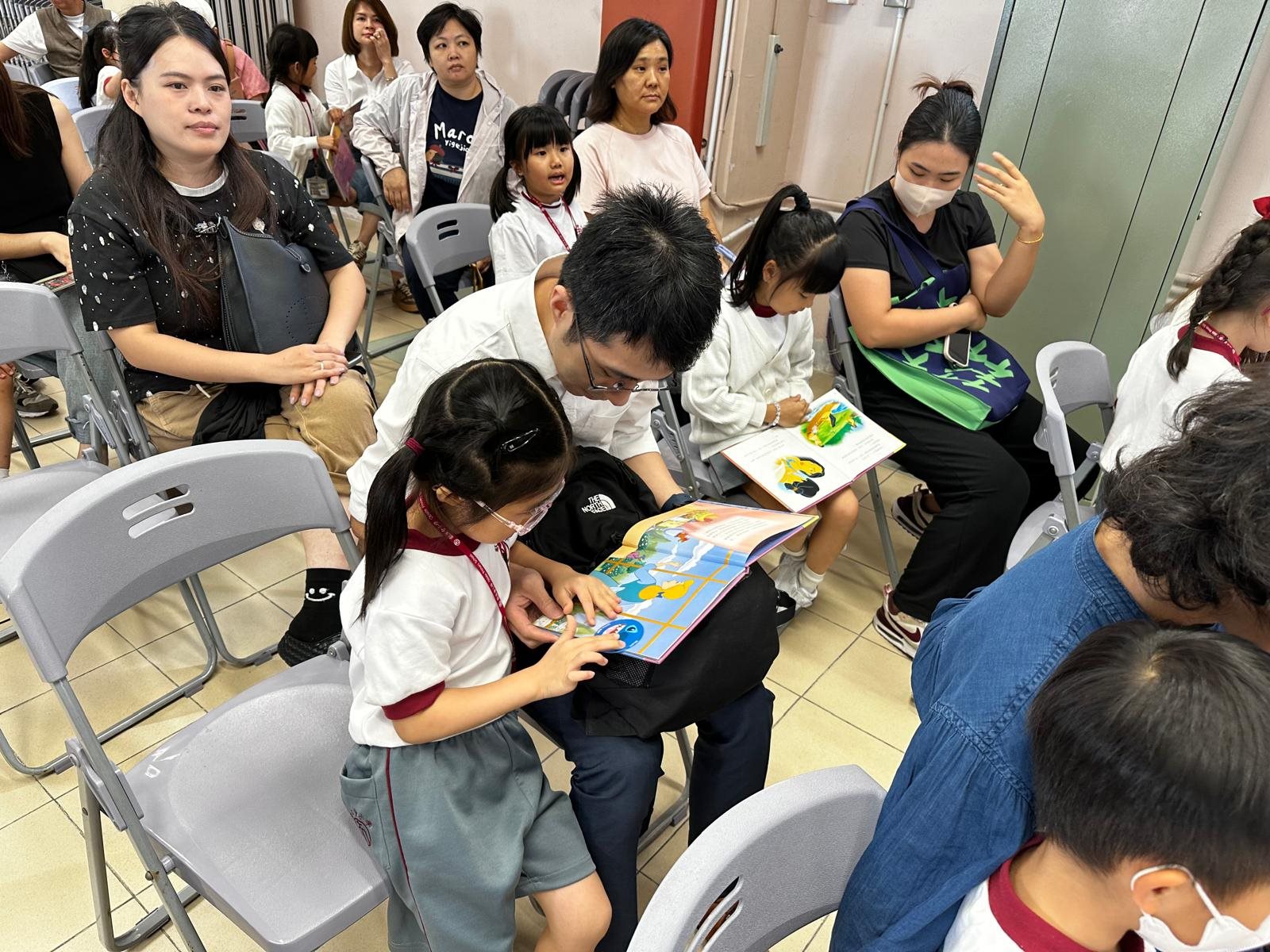 2025-10-03 (星期五) 活動類別:家長相關 為培養兒童從小養成閱讀的習慣,激發閱讀的興趣,提升閱讀賞析能力; 因此本校中央圖書館為一年級同學及家長以分班形式舉行「親子閱讀會」,使家長加深對親子閱讀的認識; 並透過學校圖書館的資源,與子女分享共讀課外書籍的溫馨時光。