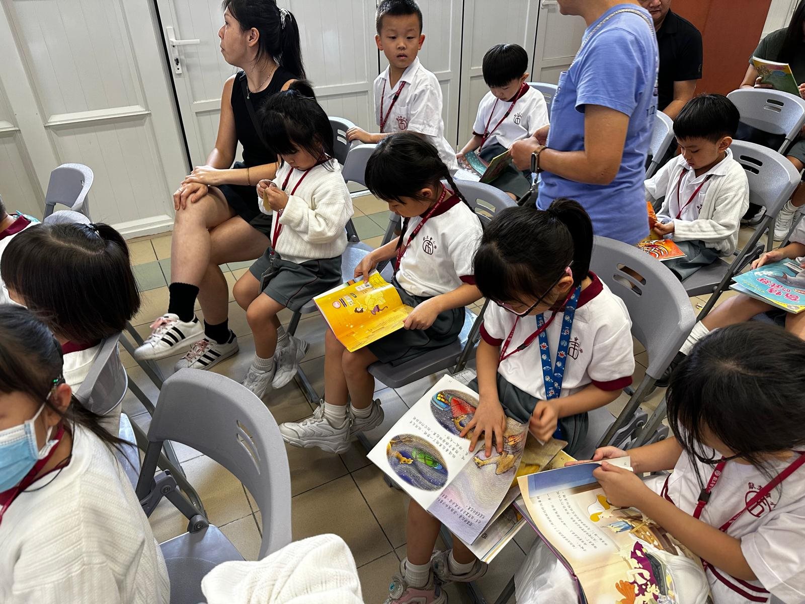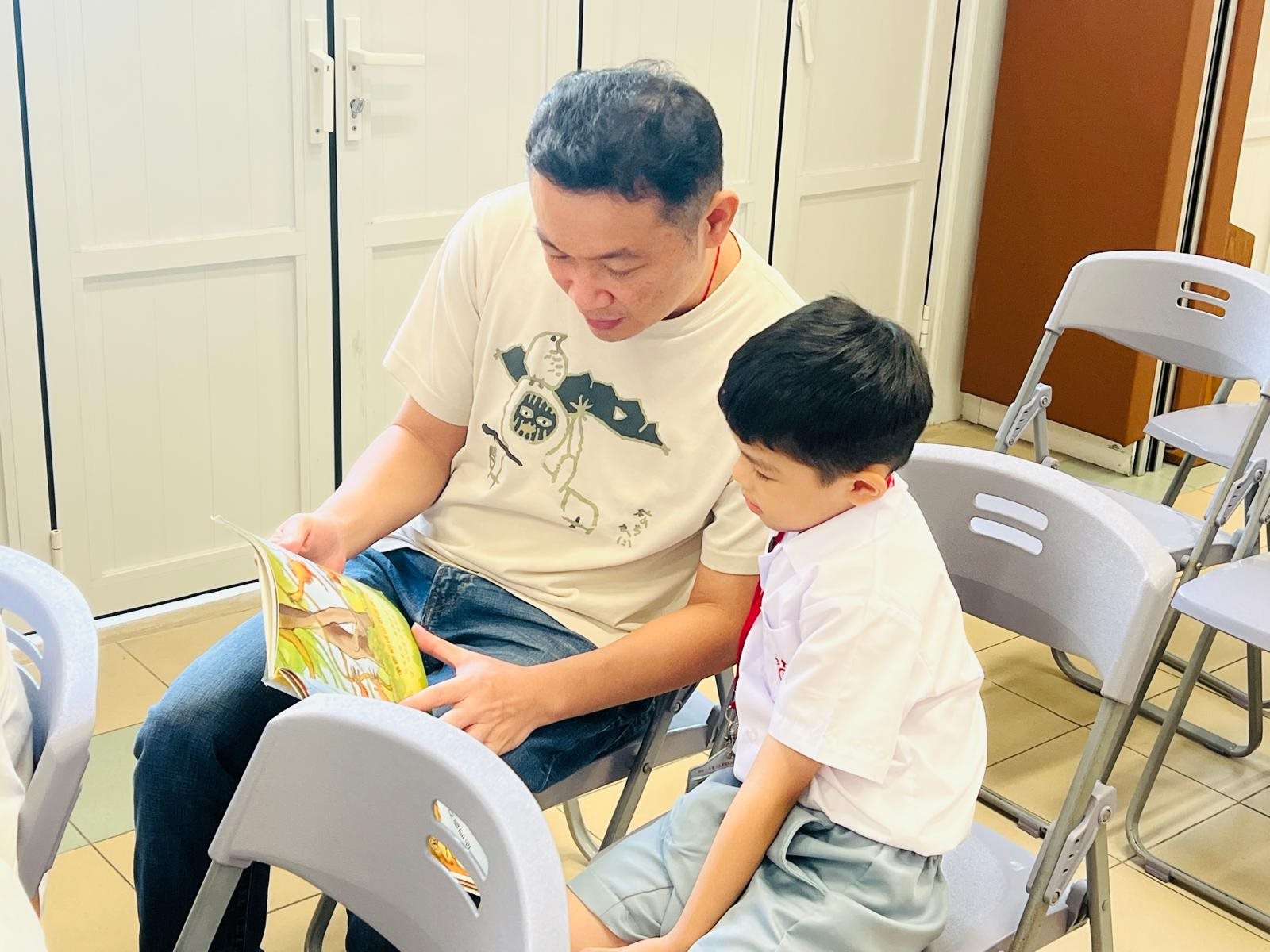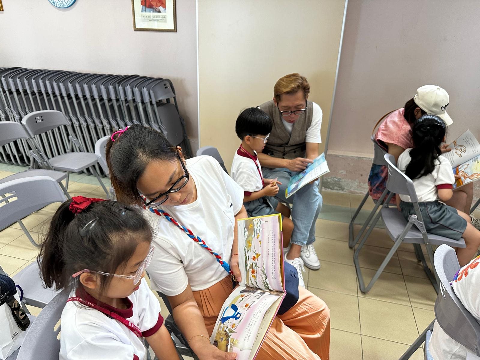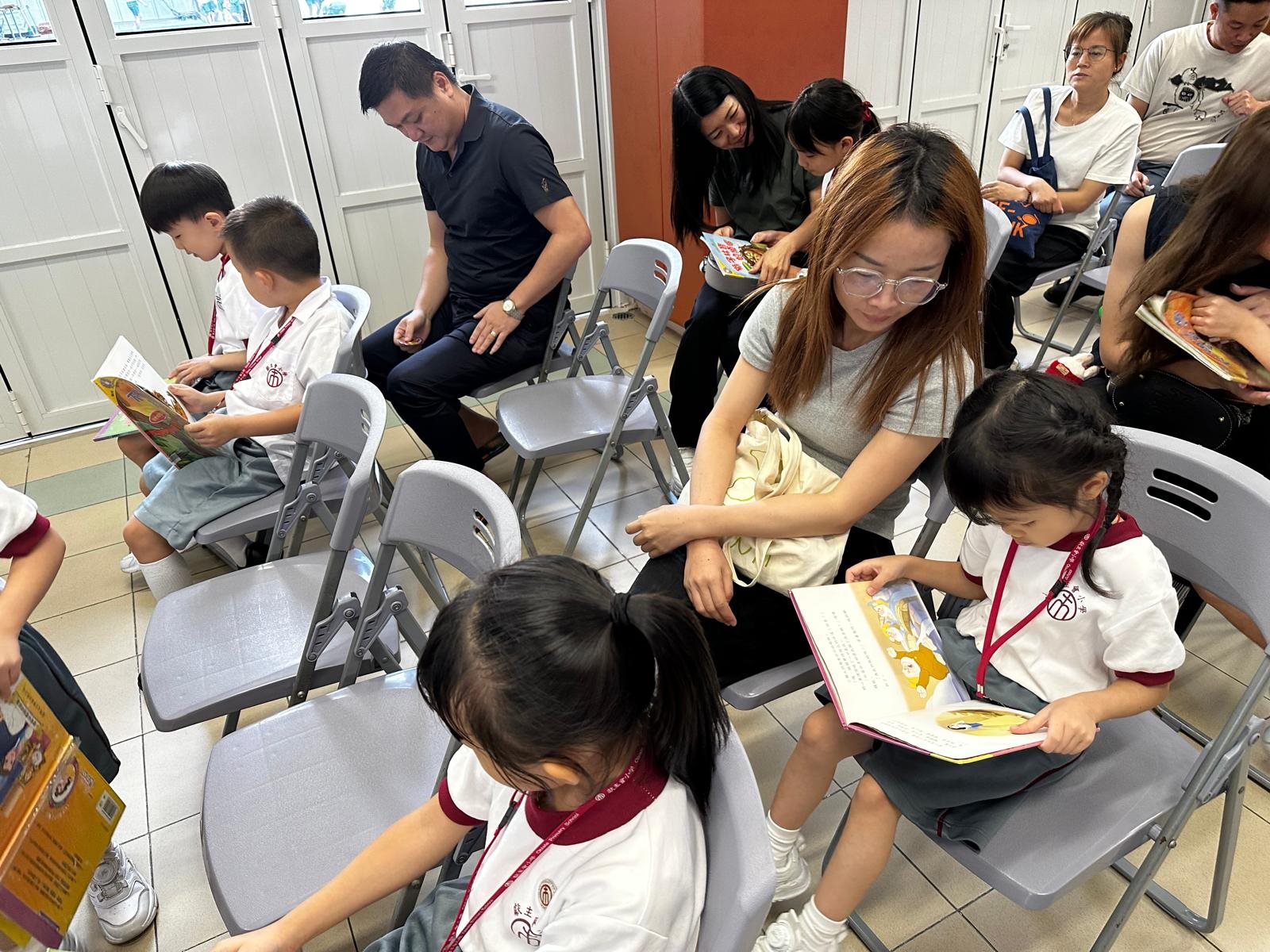 2025-10-03 (星期五) 活動類別:家長相關 為培養兒童從小養成閱讀的習慣,激發閱讀的興趣,提升閱讀賞析能力; 因此本校中央圖書館為一年級同學及家長以分班形式舉行「親子閱讀會」,使家長加深對親子閱讀的認識; 並透過學校圖書館的資源,與子女分享共讀課外書籍的溫馨時光。