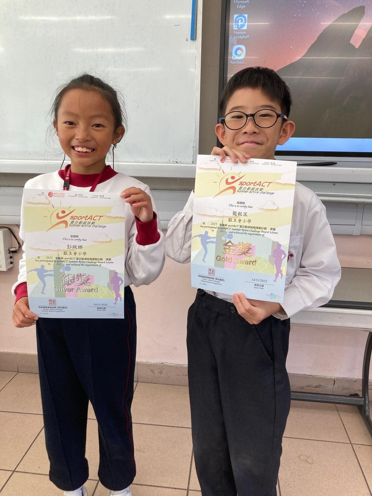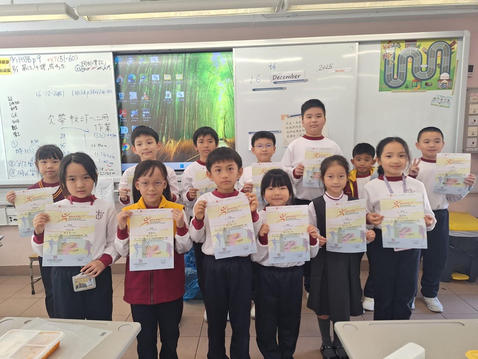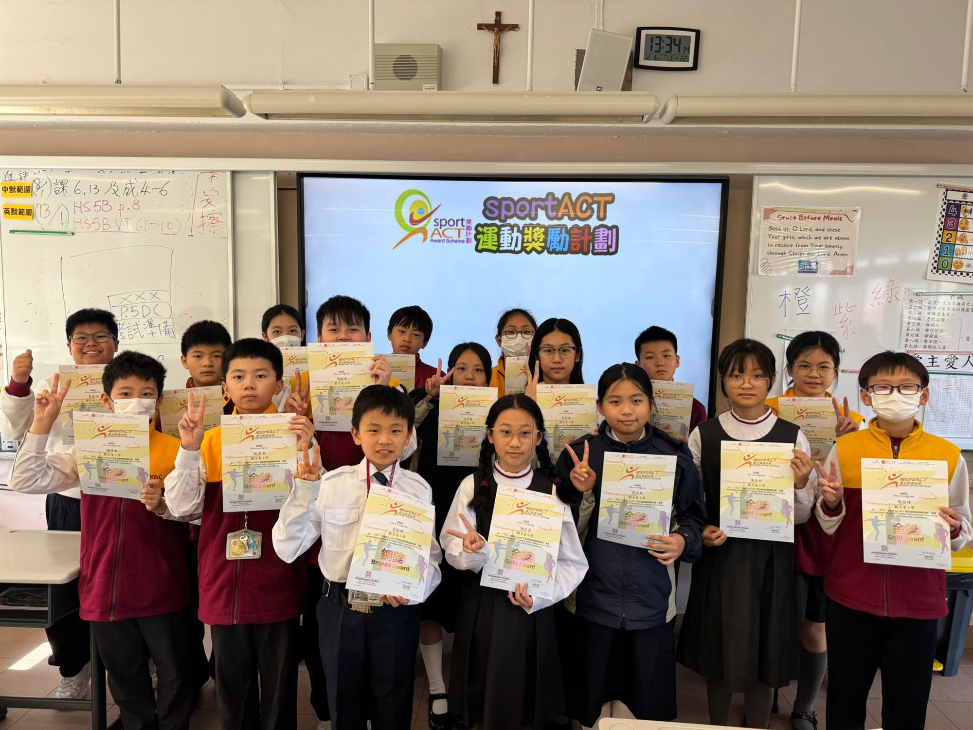 本校十分關注學生的身心健康,因此在體育科推行Sport Act 運動日誌計劃,目標是鼓勵學生多做運動,並按自己的能力訂立適量的運動參與計畫,建立恆常參與運動的習慣,在求學時期讓體魄與心智一同健康成長。本年度計劃已完滿結束,感謝同學們一起參與,推行日期為1/9/2025-31/10/2025,全期為時連續八週,凡表現達標的學生(小三至小六),可以得金、銀或銅獎以資表揚。我校共有131位同學得獎,同學分別取得52金、43銀及36銅。