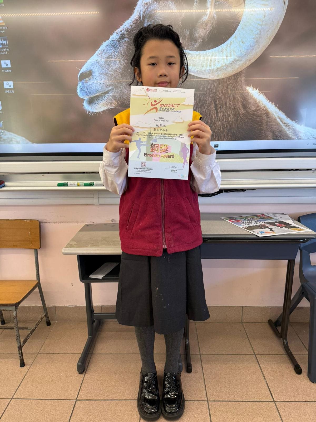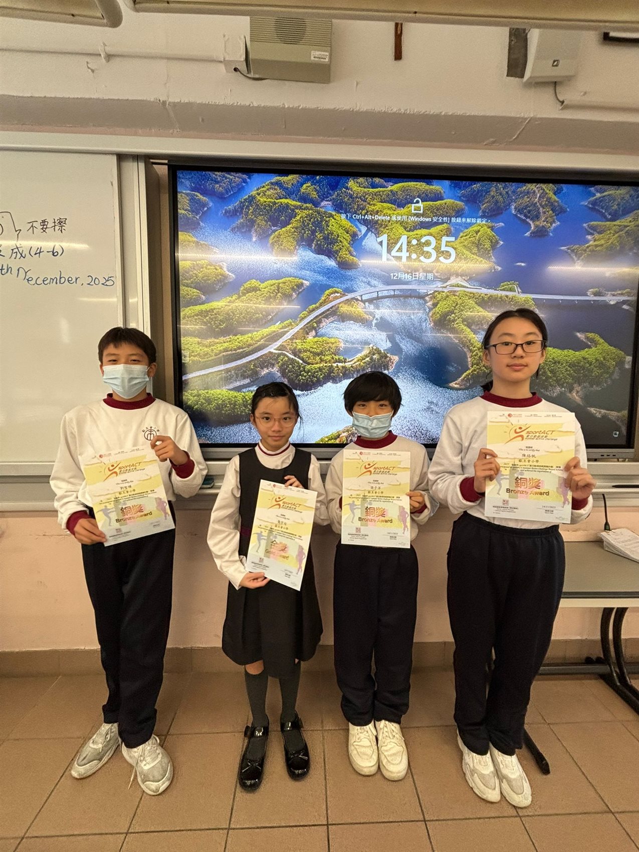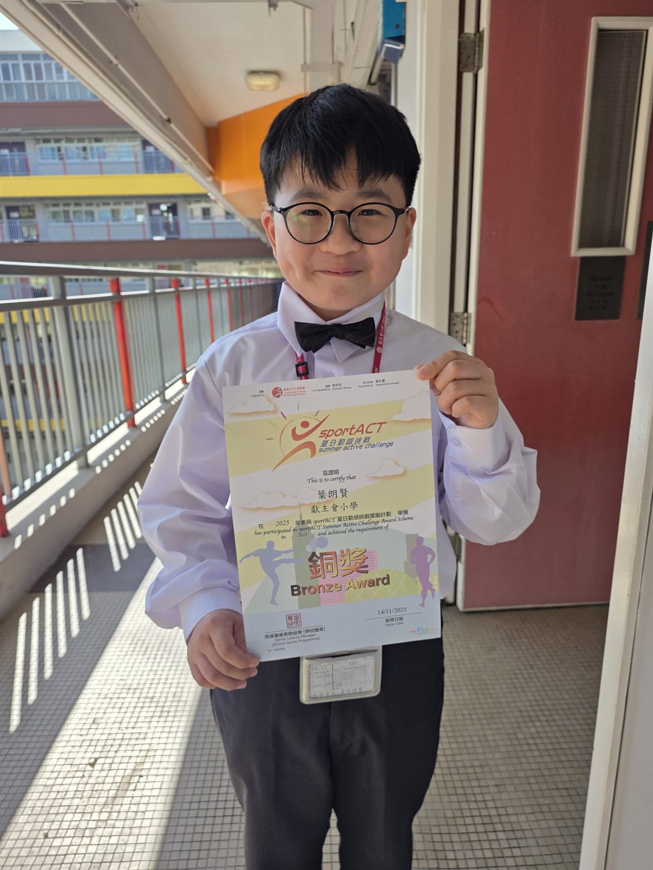 本校十分關注學生的身心健康,因此在體育科推行Sport Act 運動日誌計劃,目標是鼓勵學生多做運動,並按自己的能力訂立適量的運動參與計畫,建立恆常參與運動的習慣,在求學時期讓體魄與心智一同健康成長。本年度計劃已完滿結束,感謝同學們一起參與,推行日期為1/9/2025-31/10/2025,全期為時連續八週,凡表現達標的學生(小三至小六),可以得金、銀或銅獎以資表揚。我校共有131位同學得獎,同學分別取得52金、43銀及36銅。