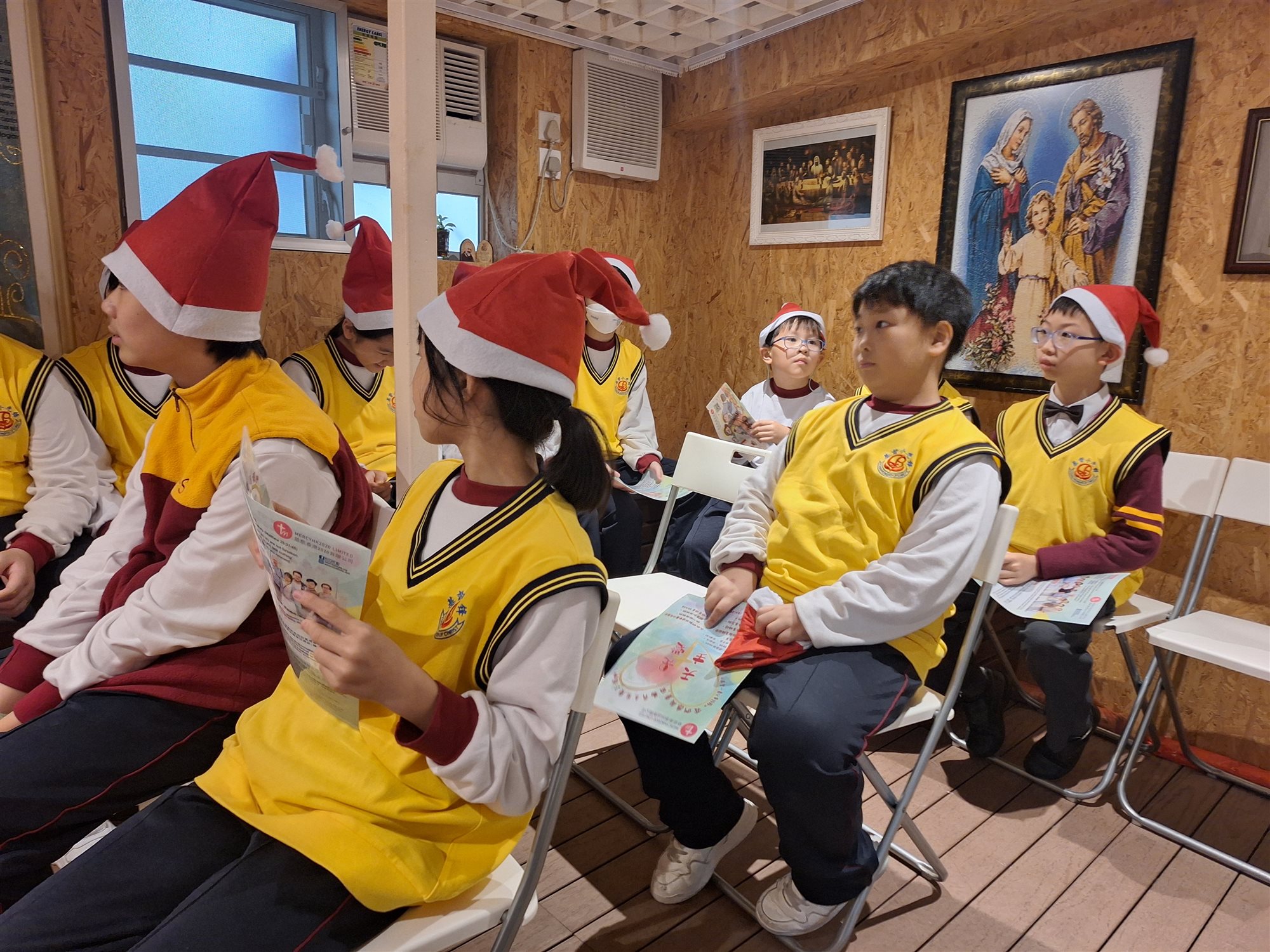 為準備迎接救主的降生,並將耶穌聖嬰帶來的平安與喜樂分享給有需要的人,獻主會小學的基督小先鋒聯同教友學生及家長,一同前往佐敦廟街的慈悲香港食堂,參與「獻小報佳音」活動。基督小先鋒和小女童軍於活動前親手製作小手工,預備送給廟街的街坊,表達心意。 當日由胡神父的同事 Lucia 接待。活動開始時,同學們在廟街獻唱聖誕歌曲,隨後在附近派發親手製作的心意手工及食物禮包,向街坊傳遞祝福。 活動開始時,同學們顯得有些害羞與緊張,但當他們成功送出第一份禮物後,漸漸變得自信與放鬆,甚至主動走到遠處,把禮物送給年長或有需要的街坊。 完成派送禮物及報佳音後,同學們前往慈悲食堂旁的祈禱室分享的當天的體驗。在 Lucia 的帶領下,大家踴躍分享感受。同學們表示內心充滿喜樂——「看到別人開心,我就會開心。」也有同學提到面對被拒絕的感受,體會到施予時別人未必一定會接受,但我們依然要尊重與愛人,因為每個人都是耶穌的化身。這次經驗讓大家獲得深刻反思與成長。 分享結束時,同學們獻唱《聖馬善樂歌》,象徵著他們願意學習學校的會祖聖馬善樂愛主愛人、服務弱小的精神。最後,大家以一篇《天主經》、一篇《聖母經》和《光榮經》結束是次活動,在禱聲中為活動畫上圓滿句號。