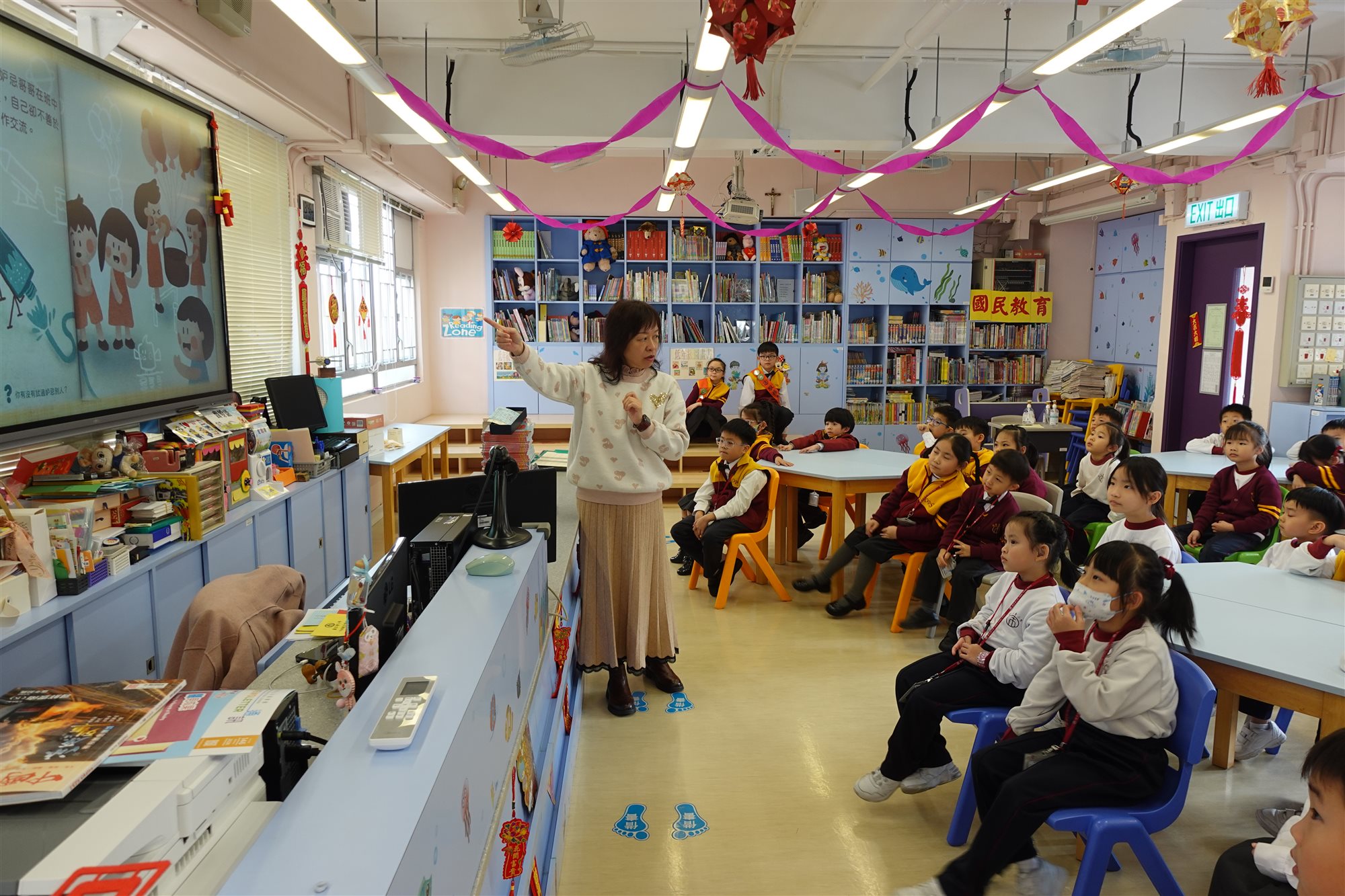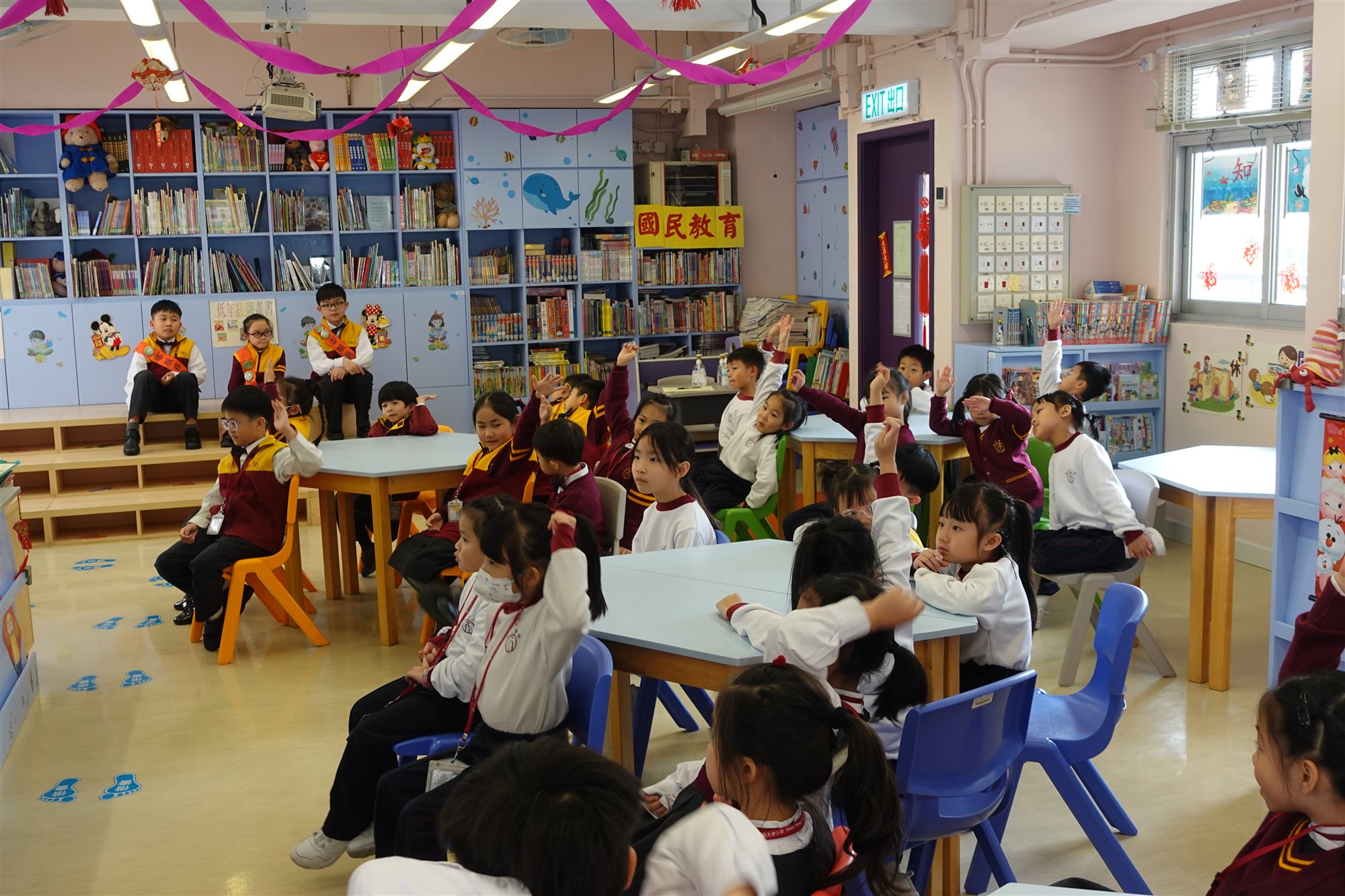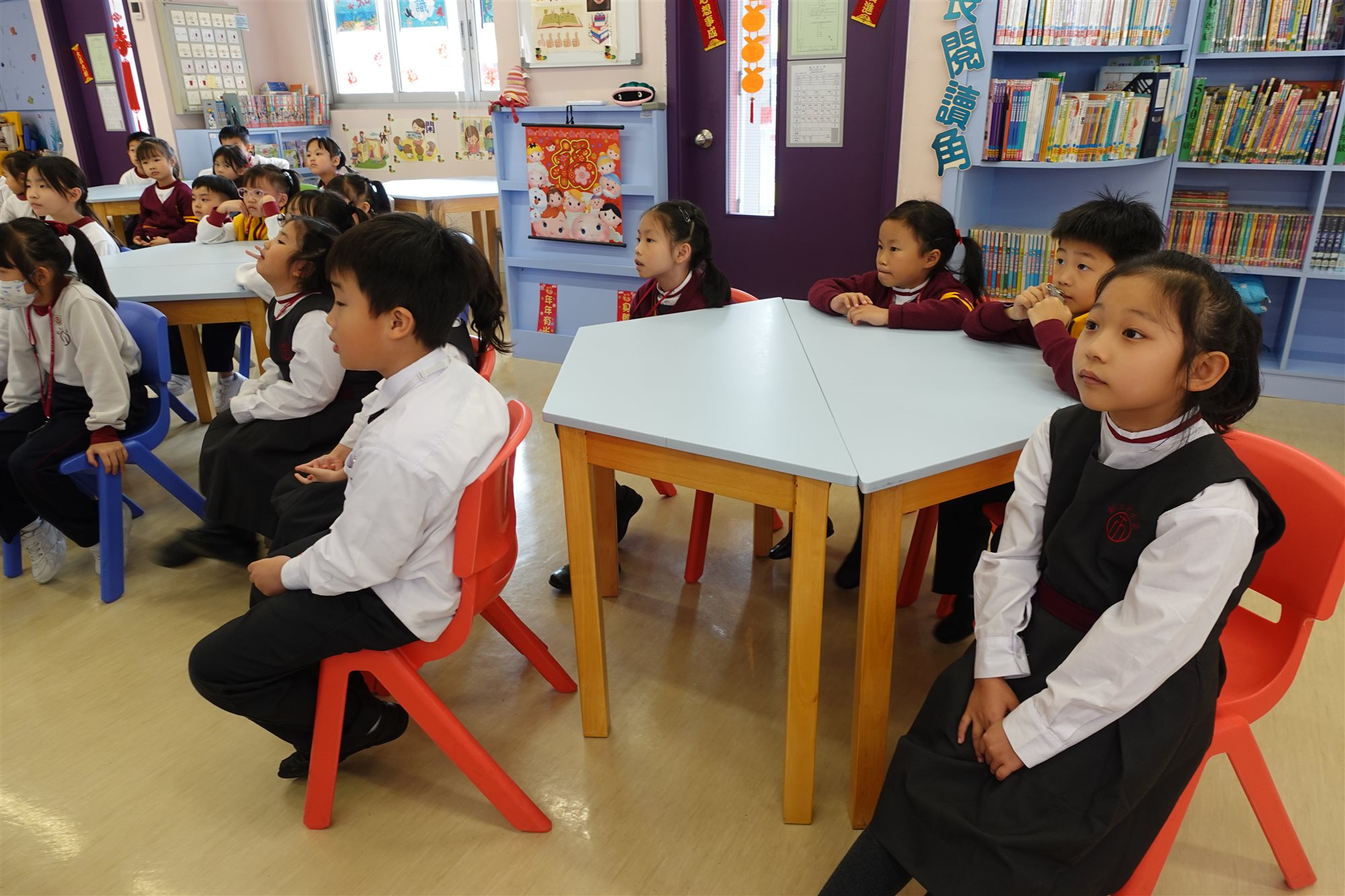 圖書館胡老師透過分享繪本--《來自星星的小雞》,記述一隻小雞意外地從外太空墜落地球.主角們送小雞回家的過程,引導一年級學生學習感恩和嘗試多角度觀察事物,再配以延伸閱讀活動,讓他們培養感恩的習慣。