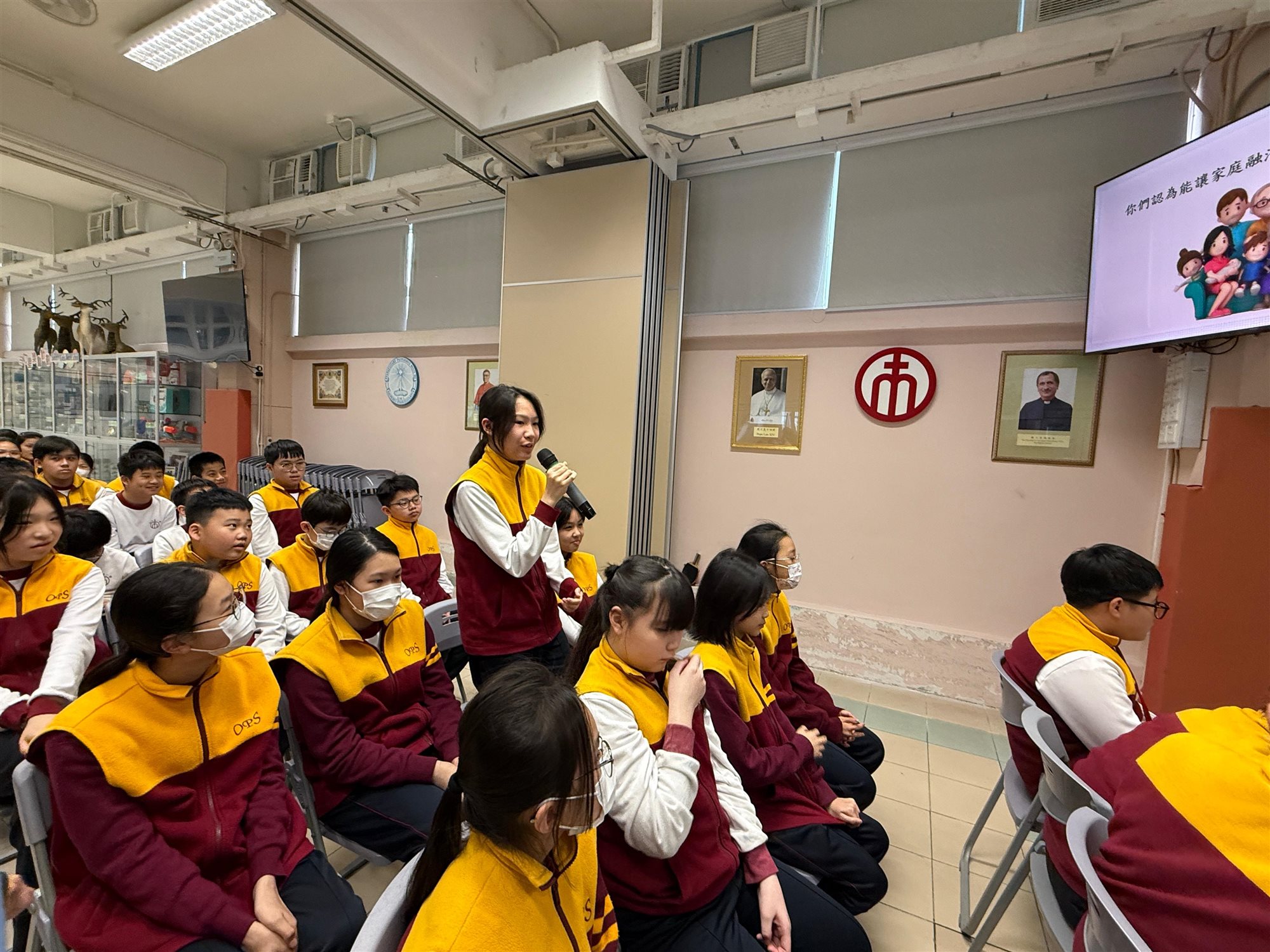 透過學校社工講解及講座活動,讓學生掌握與家人和睦相處的方法,鼓勵學生珍惜與家人相處的時間,以及推動學生反思平日與家人相處的情況。