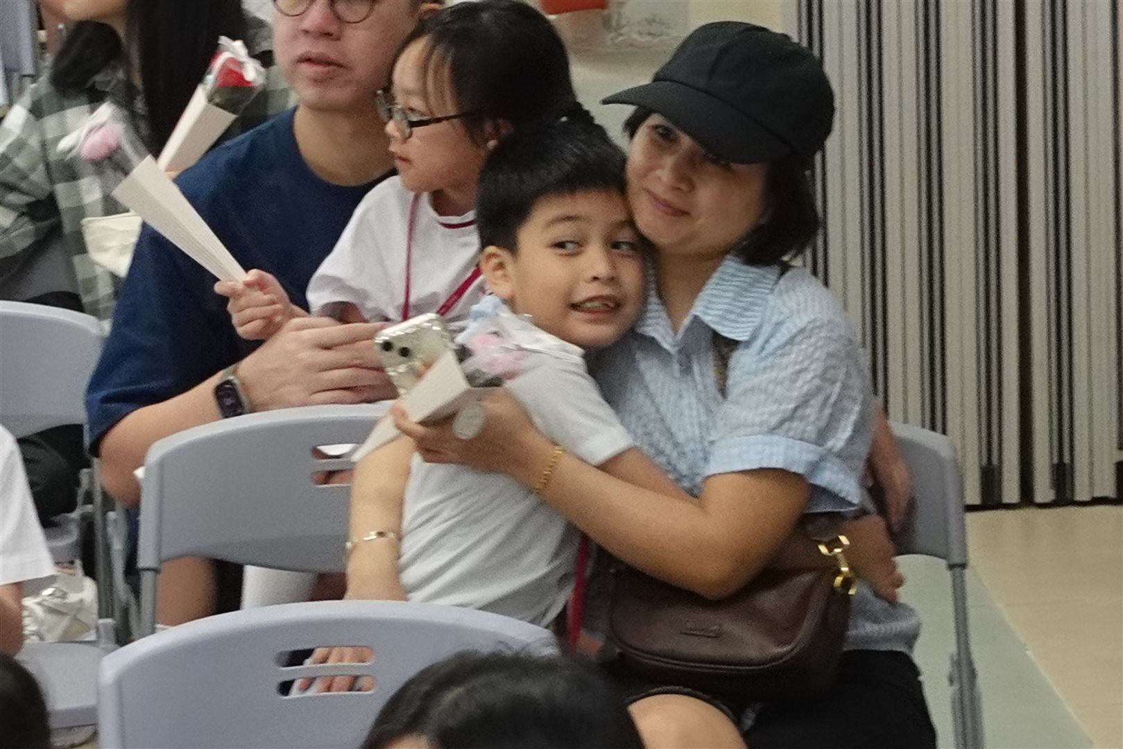 為慶祝小一新生融入校園,學校特別舉辦溫馨的親子電影欣賞會。活動精彩不斷,除了播放動人電影外,更安排了刺激的雜技與幻變神奇的魔術表演。孩子們在歡呼聲中與父母共享時光,現場氣氛高漲,笑聲洋溢。這場充滿愛與驚喜的盛會,不僅留下了難忘的成長回憶,更透過親子互動與文化藝術的薰陶,讓孩子在溫暖的校園懷抱中,開啟快樂的學習旅程。孩子在活動結束前,為父母送上花朵,以表達謝意!