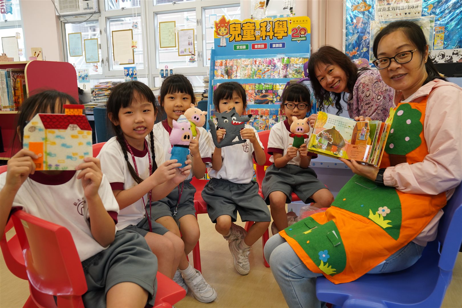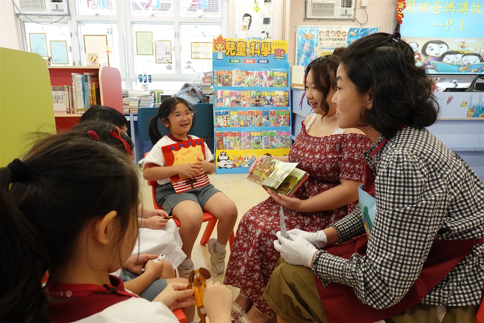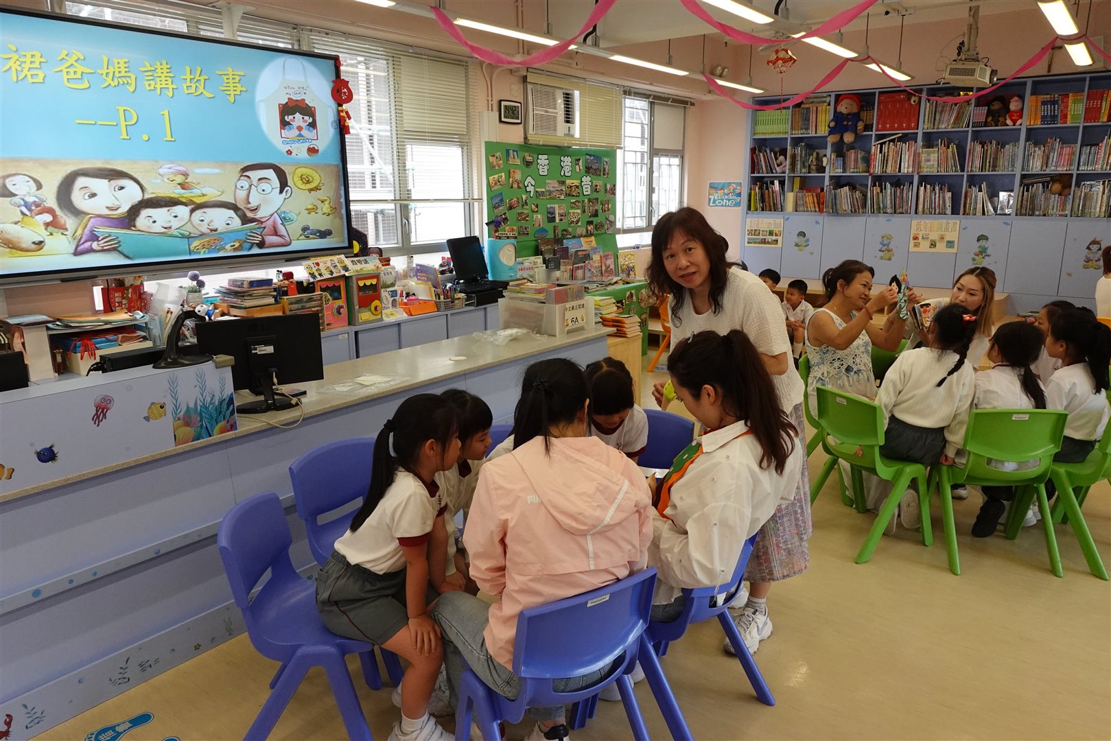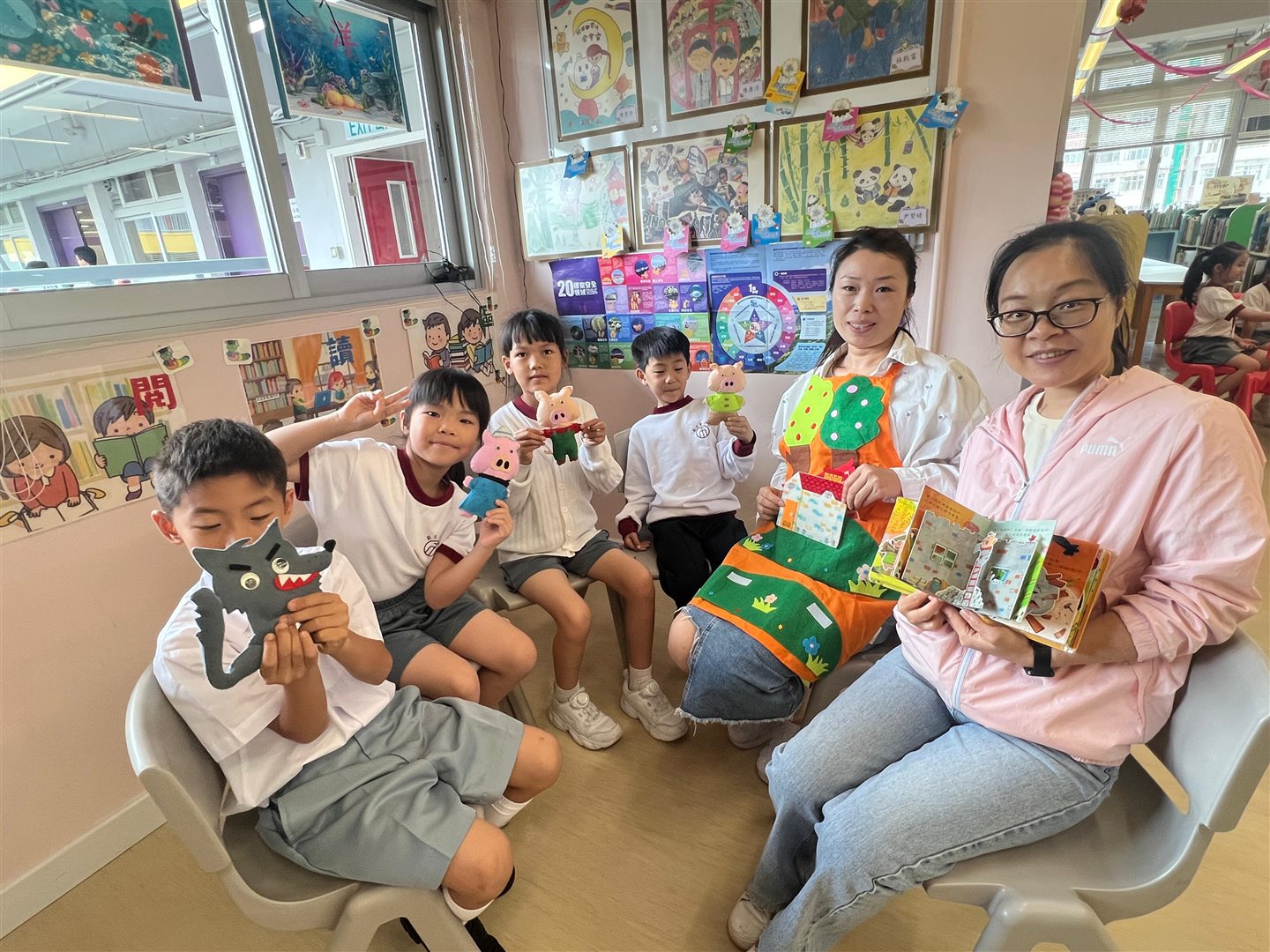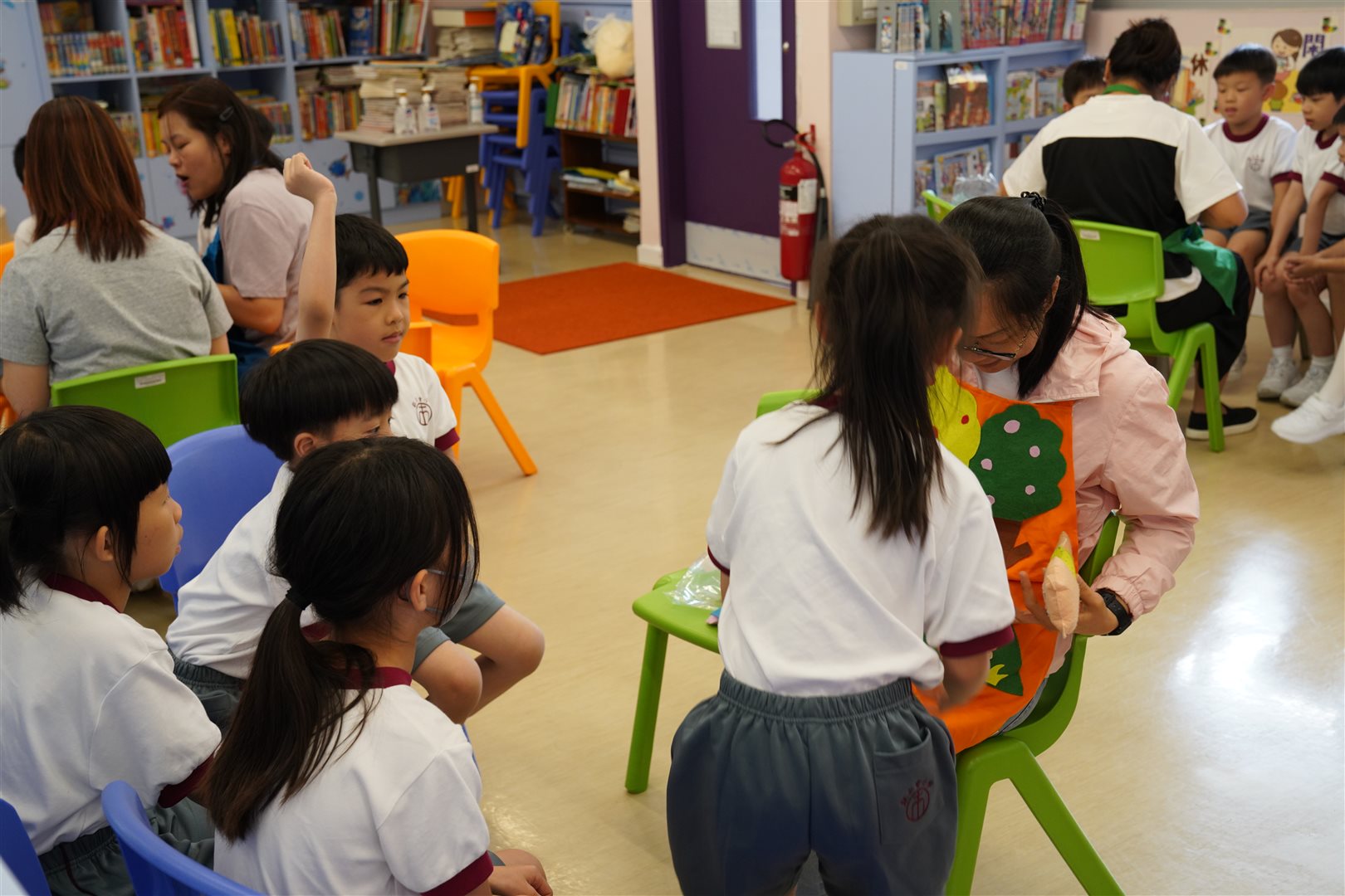 為培養一年級學生的閱讀興趣與語文能力,圖書科於多元智能課中舉辦「圍裙爸媽講故事」,童話互動閱讀活動。活動中,「故事爸媽」穿上根據童話故事內容自行製作的特式圍裙,以生動有趣的方式向學生講述著名童話,並配合提問、互動及簡單的參與環節,讓學生在輕鬆愉快的氛圍中投入故事世界。 透過富創意的「故事衣—圍裙」展示,學生不僅能更具體地認識故事角色與情節,亦能在聆聽與交流中提升專注力、想像力及閱讀興趣。活動以故事帶動學習,讓學生從閱讀中感受樂趣,建立良好的閱讀習慣,並啟發他們對童話世界的好奇與探索精神。