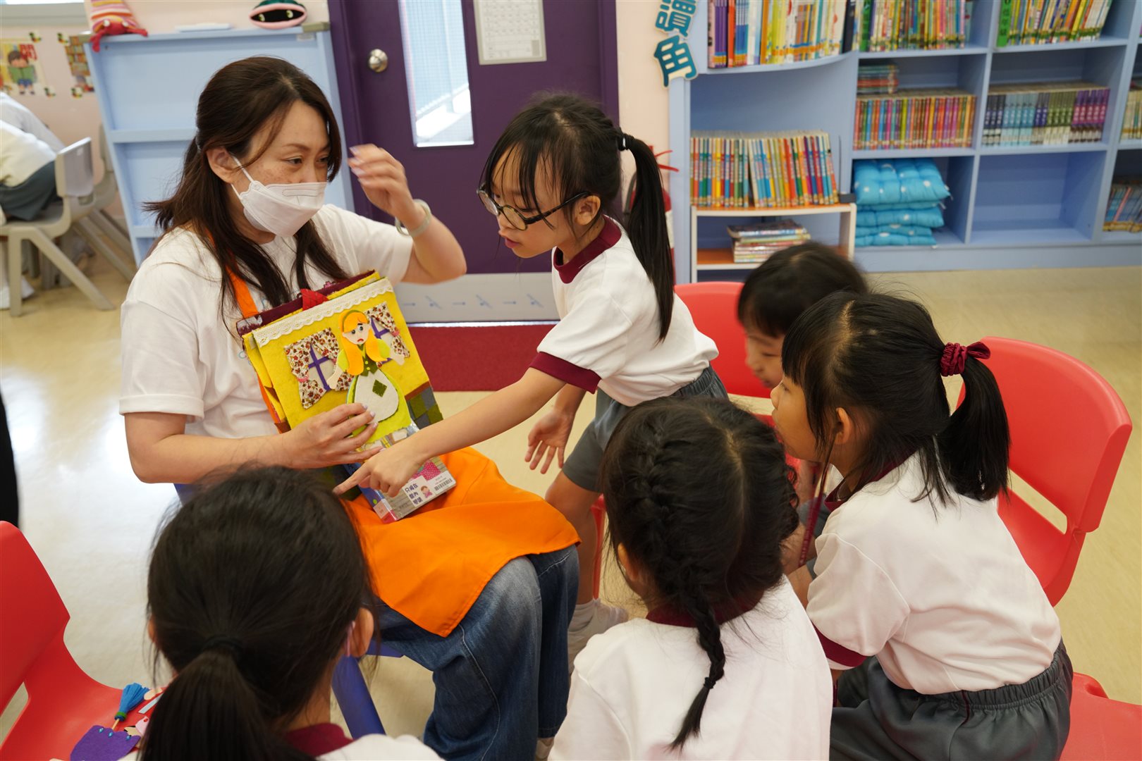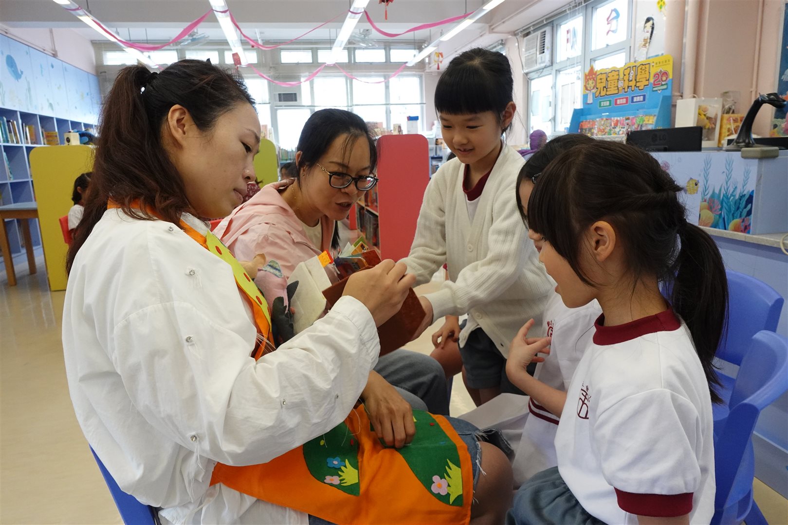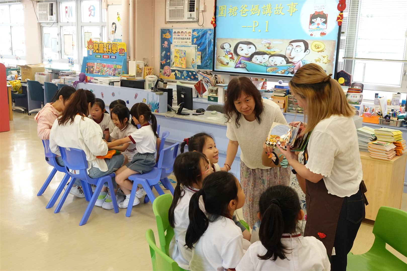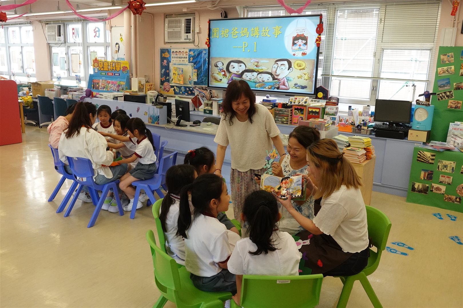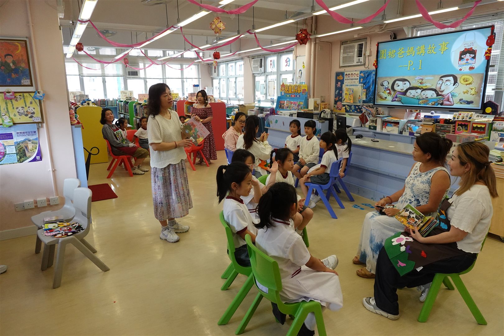 為培養一年級學生的閱讀興趣與語文能力,圖書科於多元智能課中舉辦「圍裙爸媽講故事」,童話互動閱讀活動。活動中,「故事爸媽」穿上根據童話故事內容自行製作的特式圍裙,以生動有趣的方式向學生講述著名童話,並配合提問、互動及簡單的參與環節,讓學生在輕鬆愉快的氛圍中投入故事世界。 透過富創意的「故事衣—圍裙」展示,學生不僅能更具體地認識故事角色與情節,亦能在聆聽與交流中提升專注力、想像力及閱讀興趣。活動以故事帶動學習,讓學生從閱讀中感受樂趣,建立良好的閱讀習慣,並啟發他們對童話世界的好奇與探索精神。