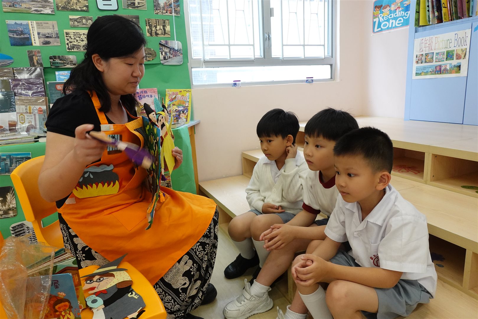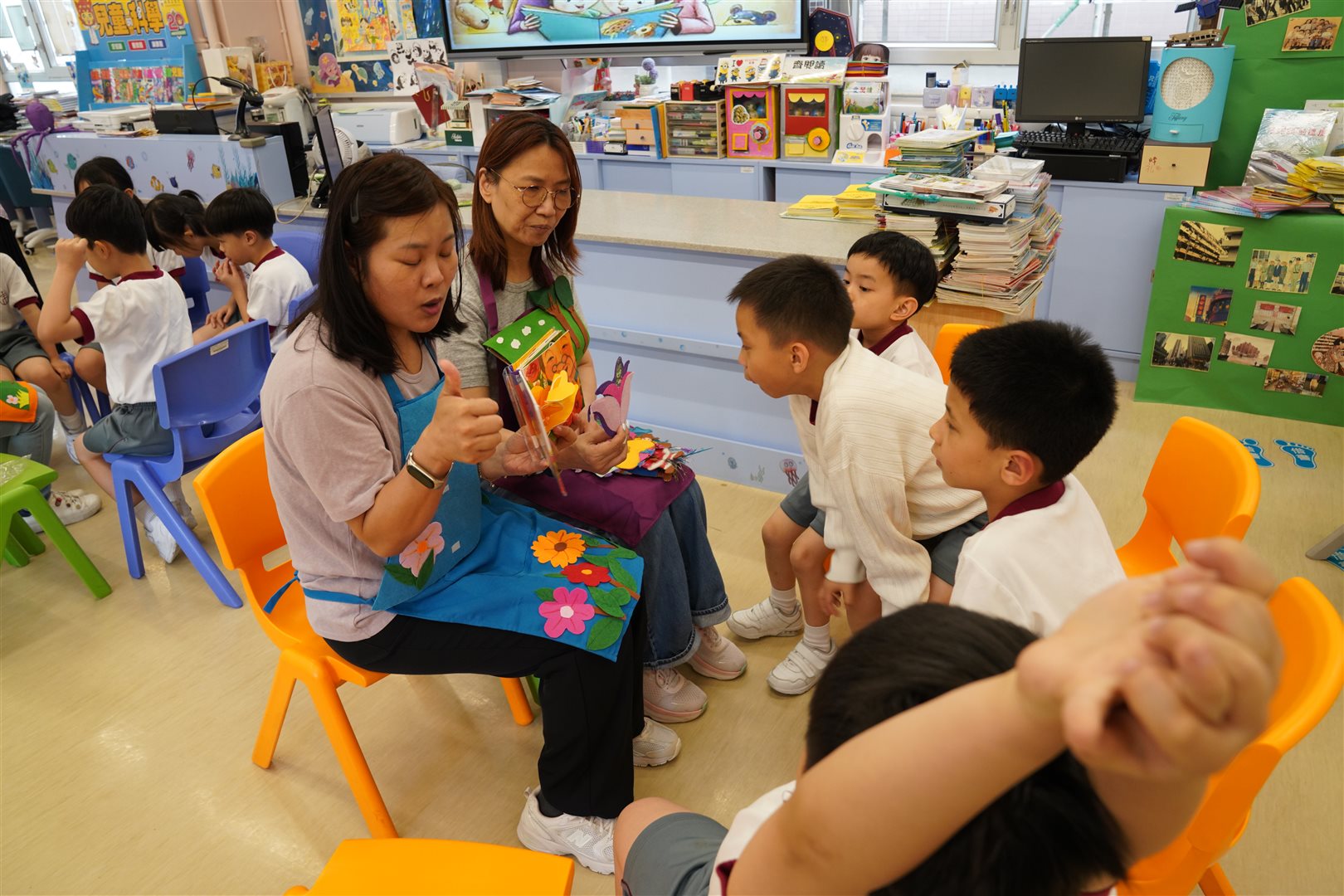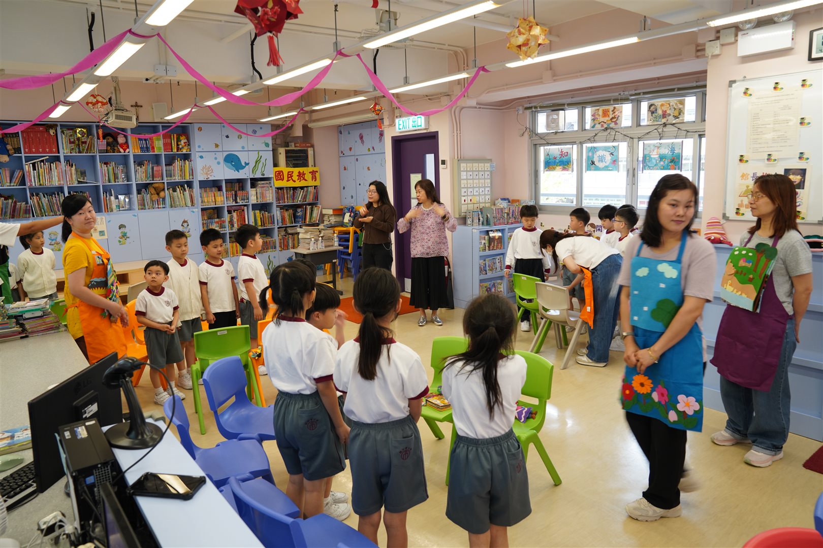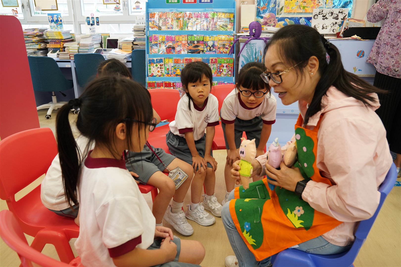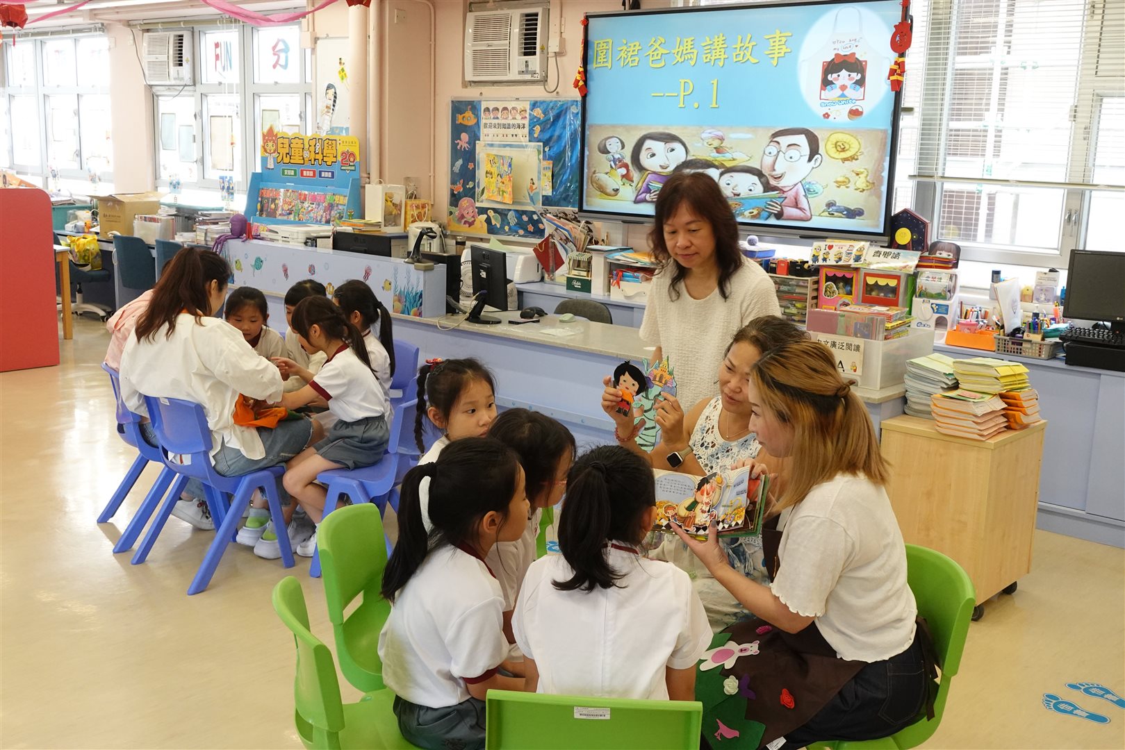 為培養一年級學生的閱讀興趣與語文能力,圖書科於多元智能課中舉辦「圍裙爸媽講故事」,童話互動閱讀活動。活動中,「故事爸媽」穿上根據童話故事內容自行製作的特式圍裙,以生動有趣的方式向學生講述著名童話,並配合提問、互動及簡單的參與環節,讓學生在輕鬆愉快的氛圍中投入故事世界。 透過富創意的「故事衣—圍裙」展示,學生不僅能更具體地認識故事角色與情節,亦能在聆聽與交流中提升專注力、想像力及閱讀興趣。活動以故事帶動學習,讓學生從閱讀中感受樂趣,建立良好的閱讀習慣,並啟發他們對童話世界的好奇與探索精神。